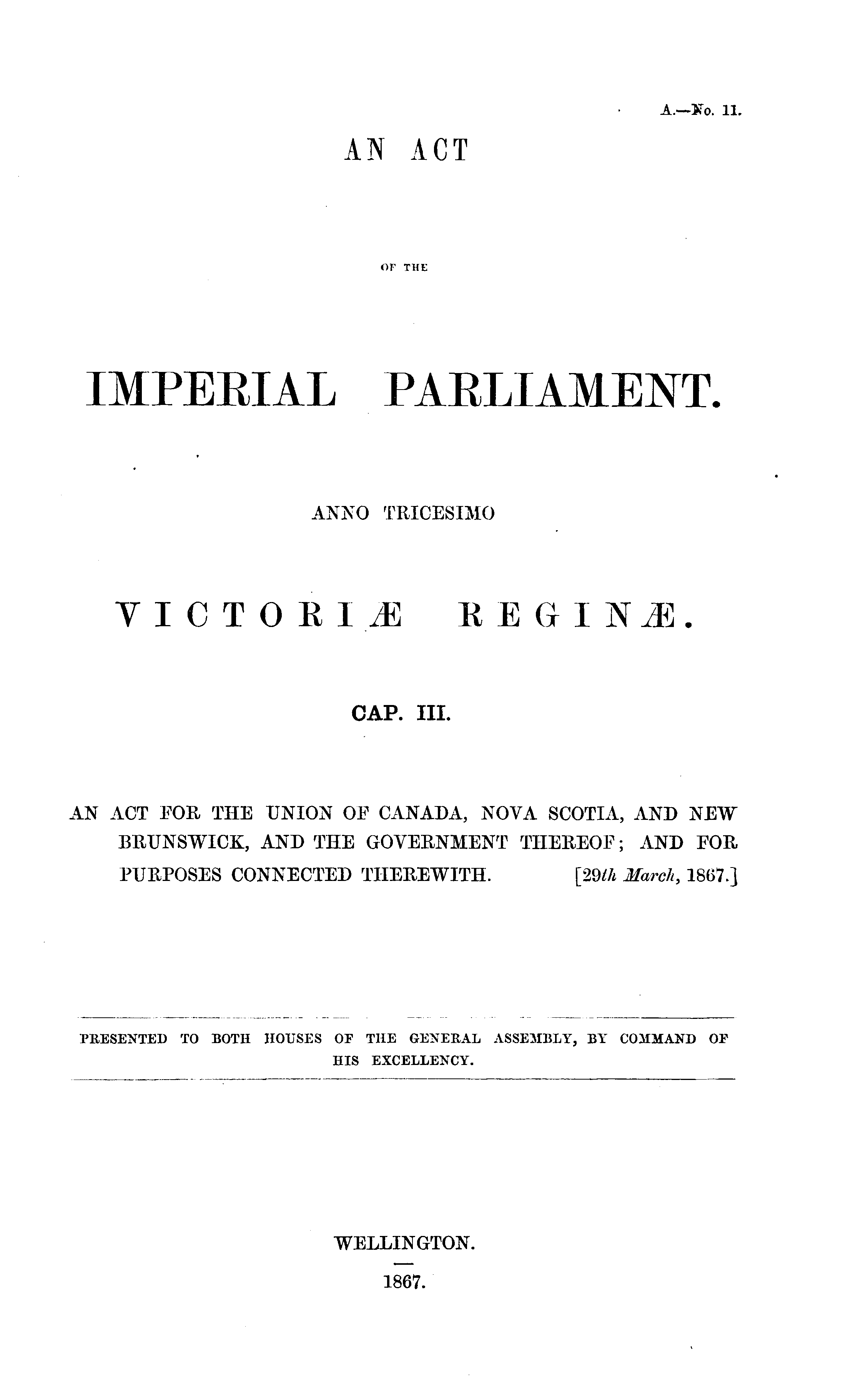 AN ACT OF THE IMPERIAL PARLIAMENT. ANNO TRICESIMO VICTORIÆ REGINÆ.