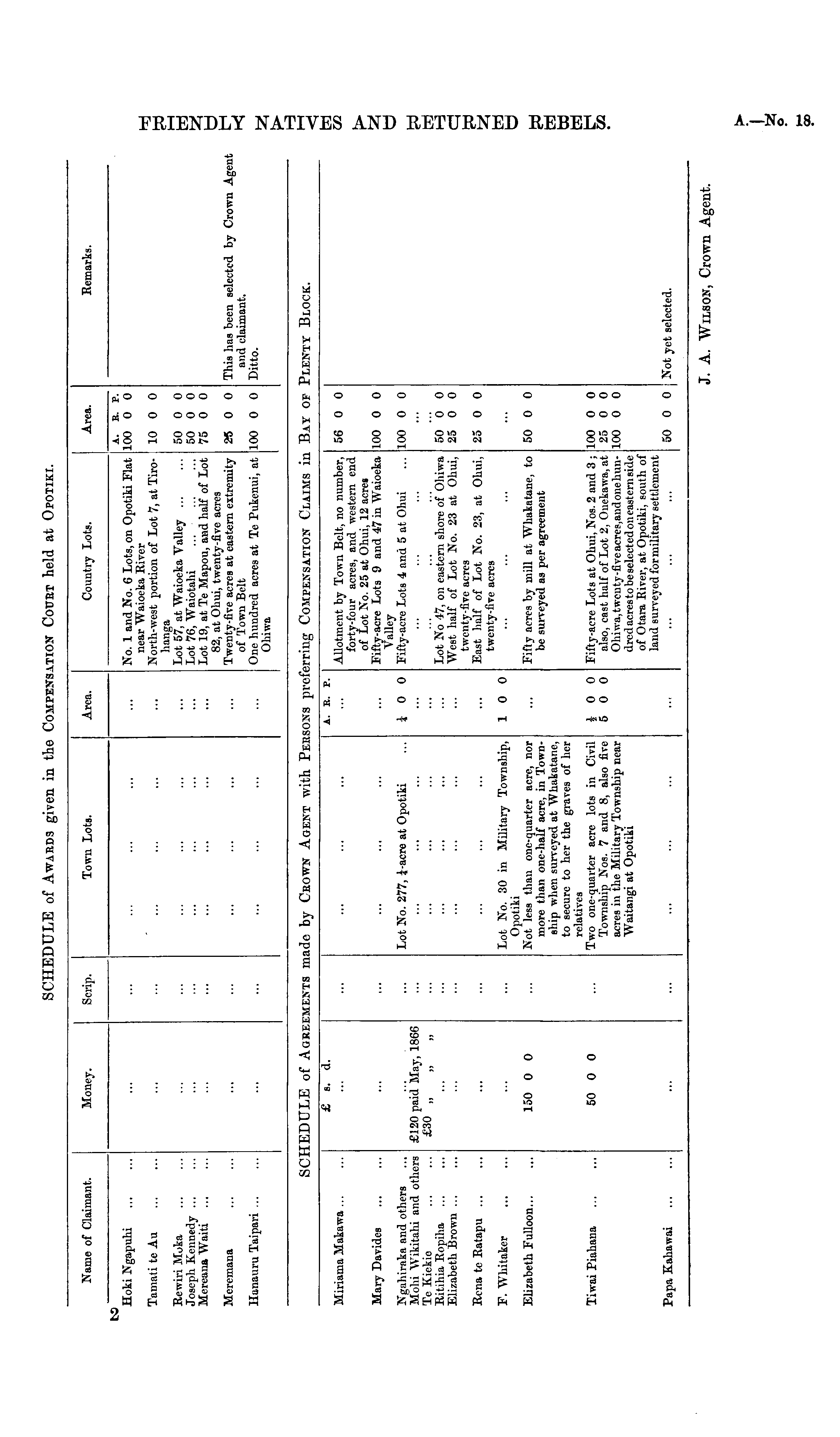 SCHEDULE of AWARDS given in the COMPENSATION COURT held at OPOTIKI.