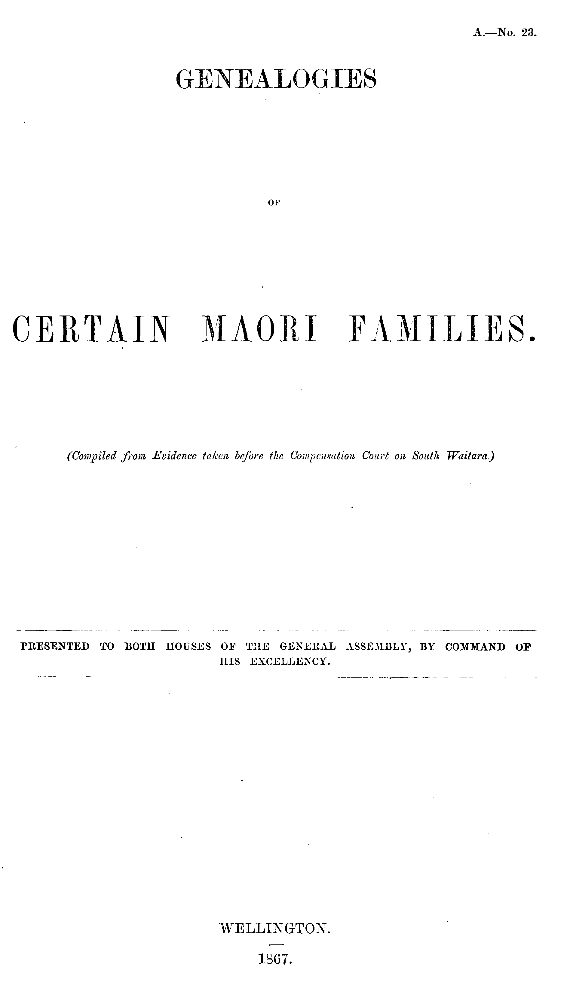 GENEALOGIES OF CERTAIN MAORI FAMILIES.
