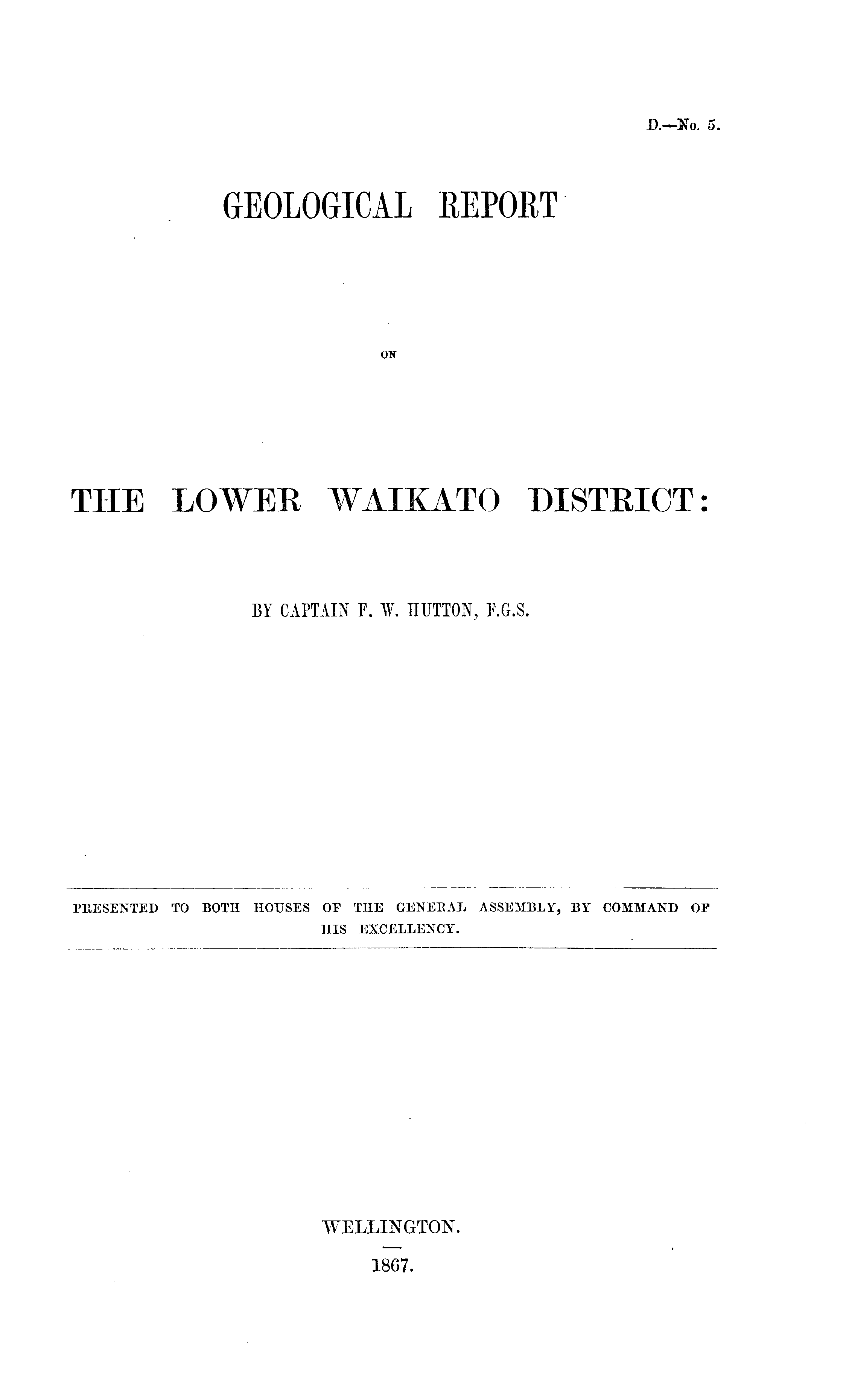 GEOLOGICAL REPORT ON THE LOWER WAIKATO DISTRICT: BY CAPTAIN F.W. HUTTON, F.G.S.