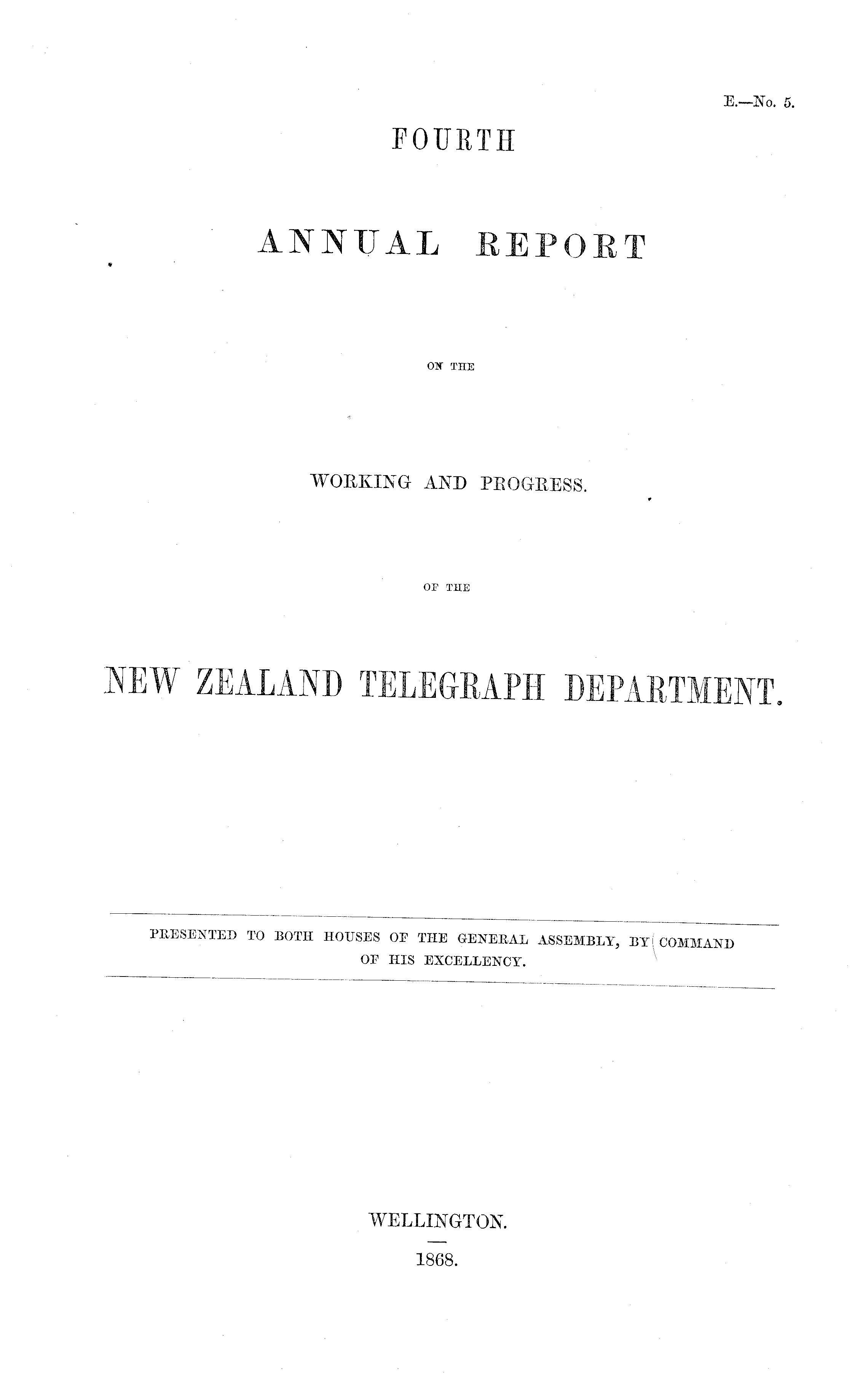 FOURTH ANNUAL REPORT ON THE WORKING AND PROGRESS. OF THE NEW ZEALAND TELEGRAPH DEPARTMENT.