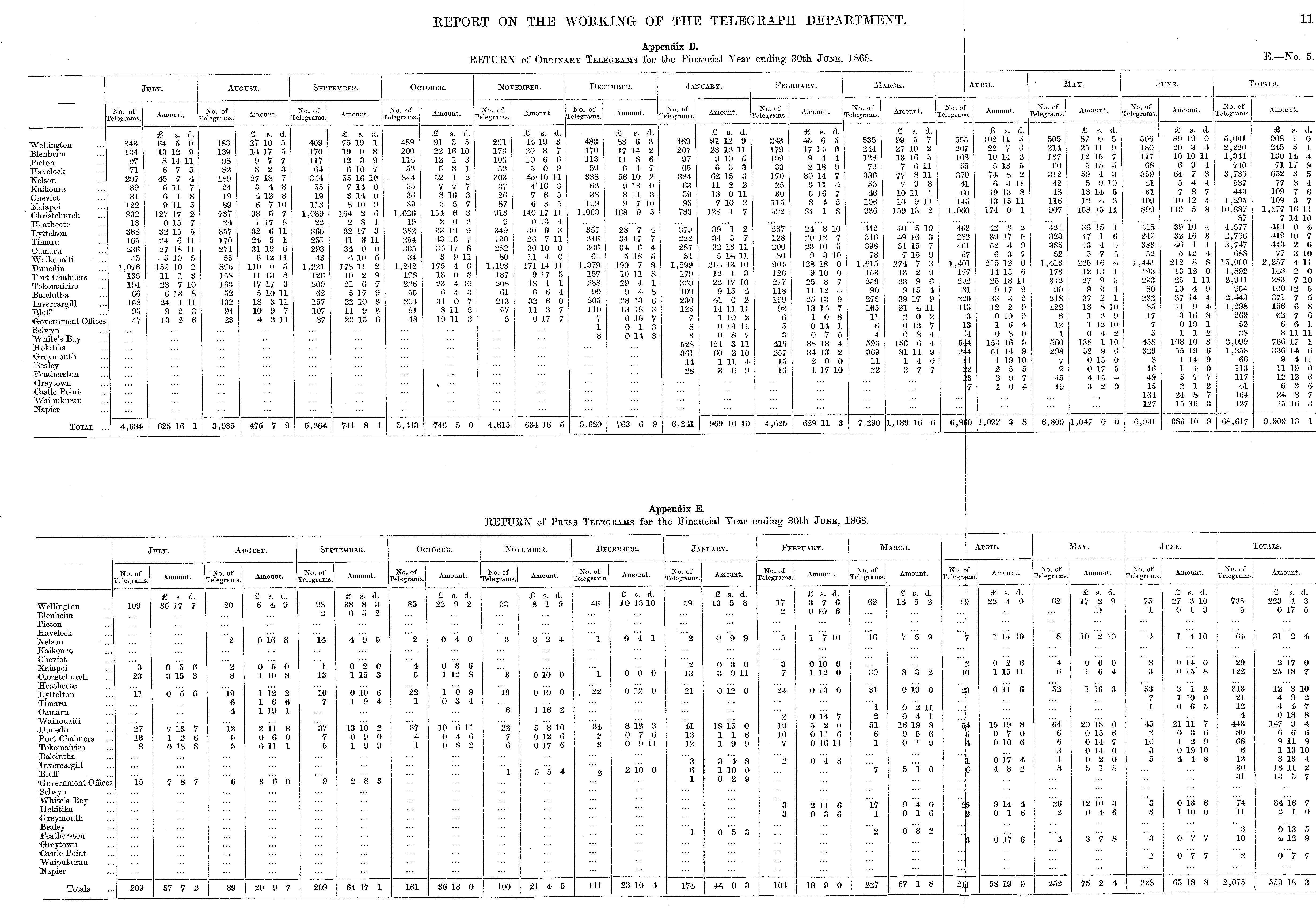 Appendix E. RETURN of PRESS TELEGRAMS for the Financial Year ending 30th JUNE, 1868.