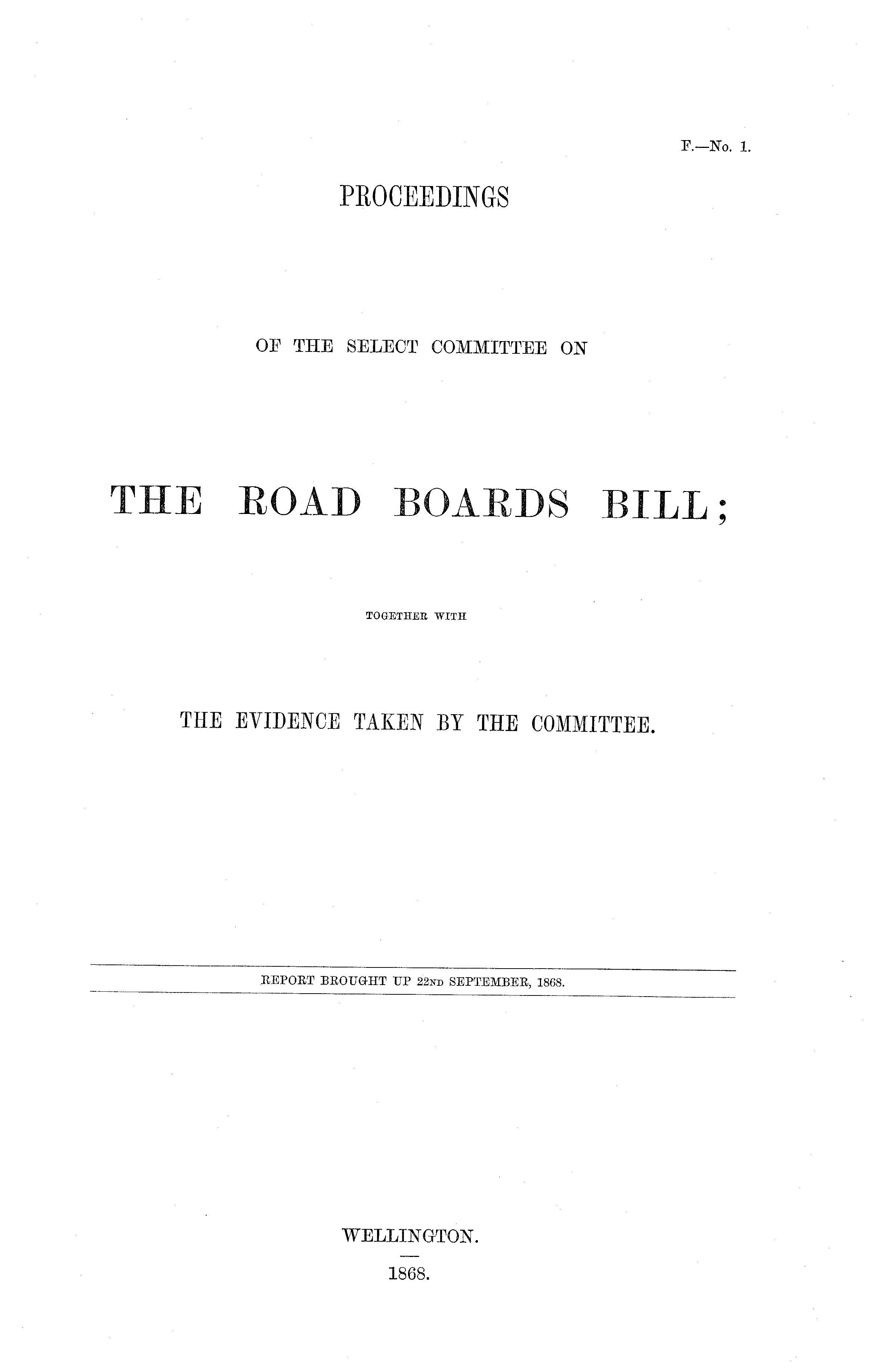 PROCEEDINGS OF THE SELECT COMMITTEE ON THE ROAD BOARDS BILL; TOGETHER WITH THE EVIDENCE TAKEN BY THE COMMITTEE.