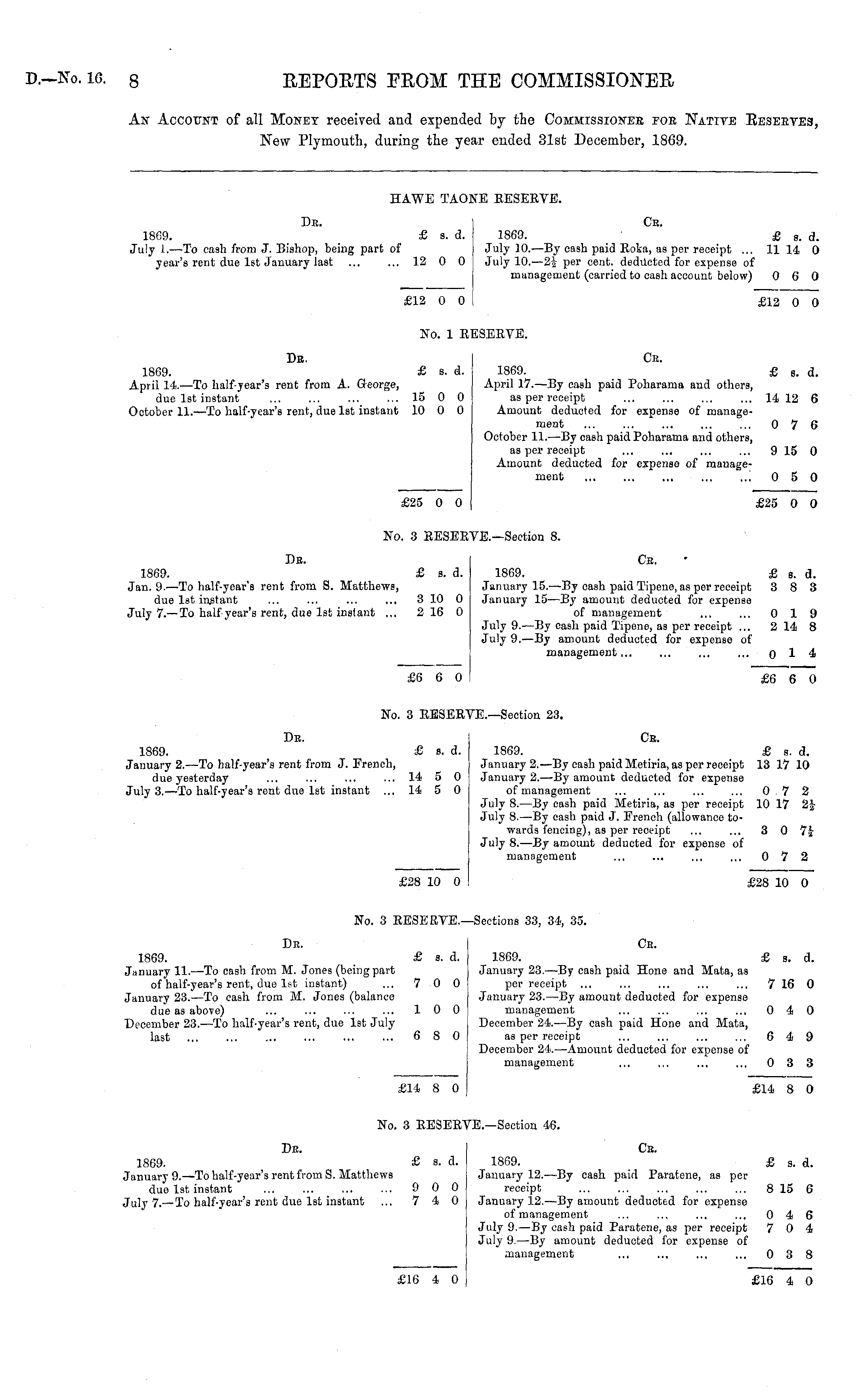 An Account of all Money received and expended by the Commissioner for Native Eeserves, New Plymouth, during the year ended 31st December, 1869.