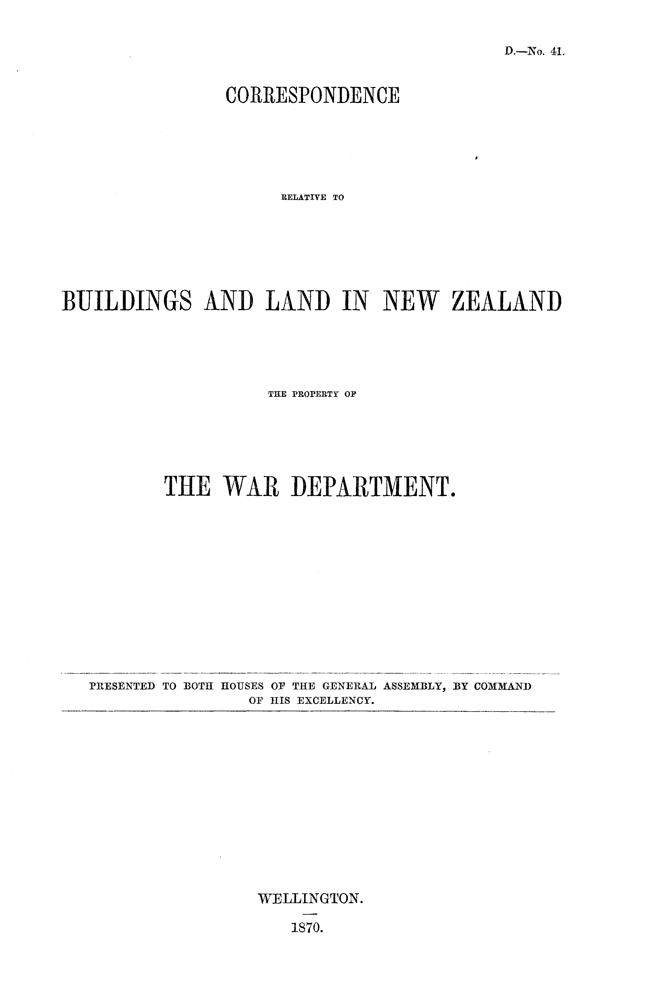 CORRESPONDENCE RELATIVE TO BUILDINGS AND LAND IN NEW ZEALAND THE PROPERTY OF THE WAR DEPARTMENT.