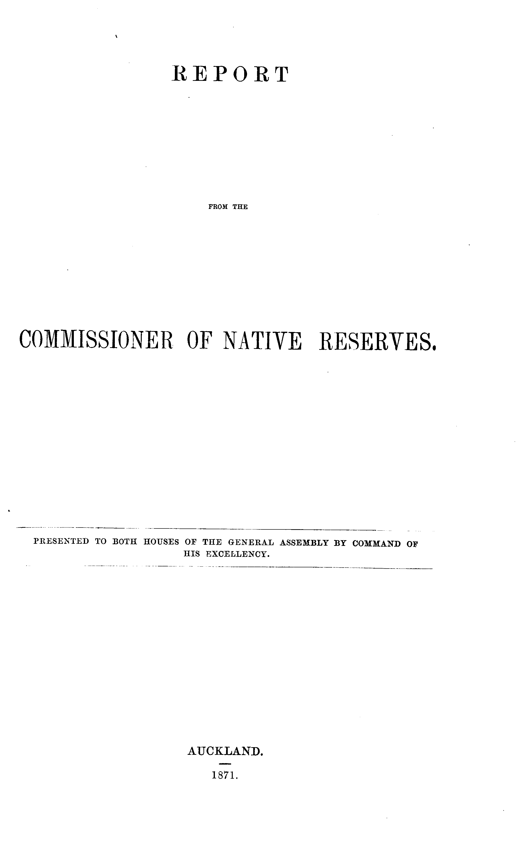REPORT FROM THE COMMISSIONER OF NATIVE RESERVES.