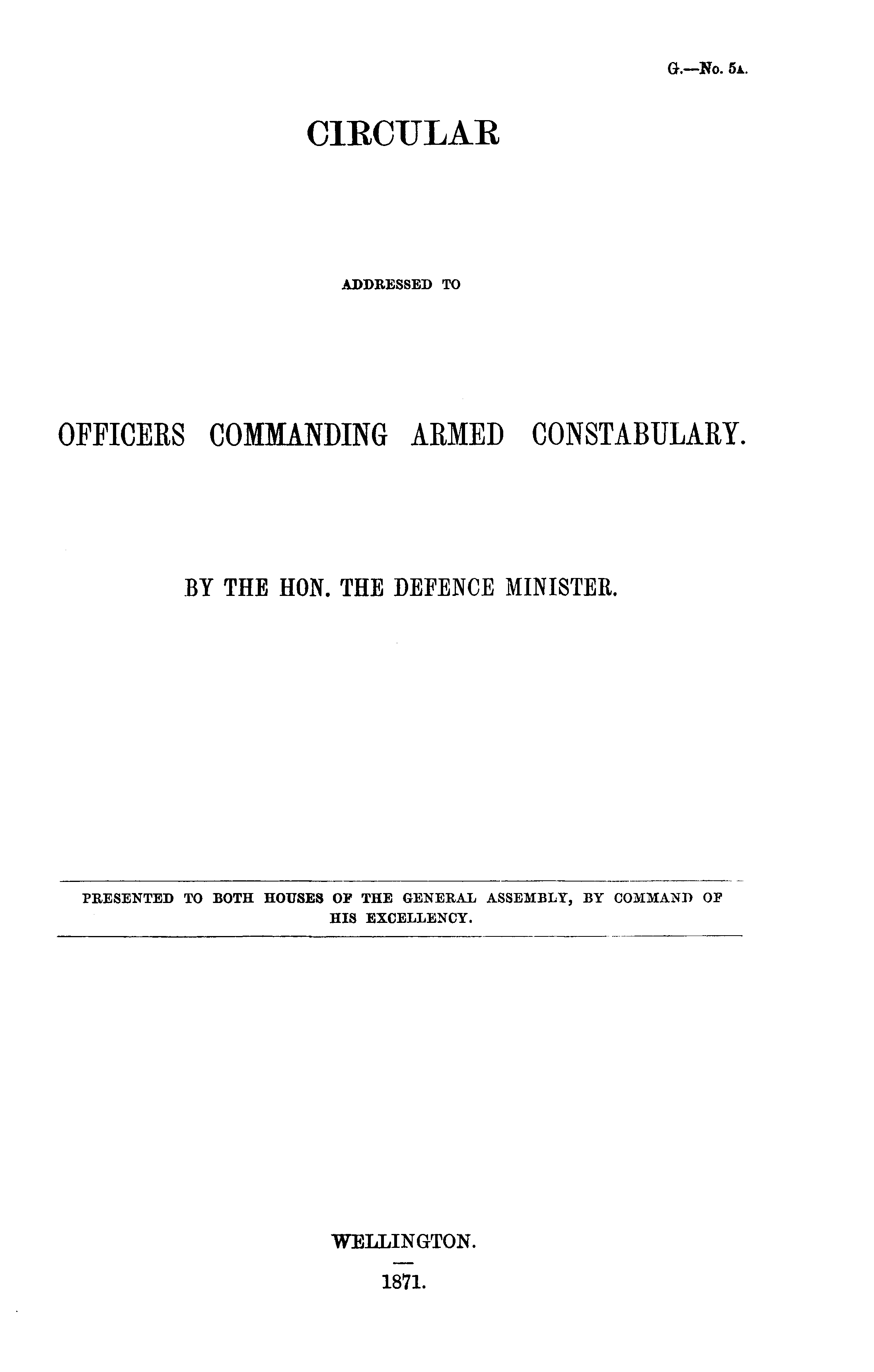 CIRCULAR ADDRESSED TO OFFICERS COMMANDING ARMED CONSTABULARY. BY THE HON. THE DEFENCE MINISTER.