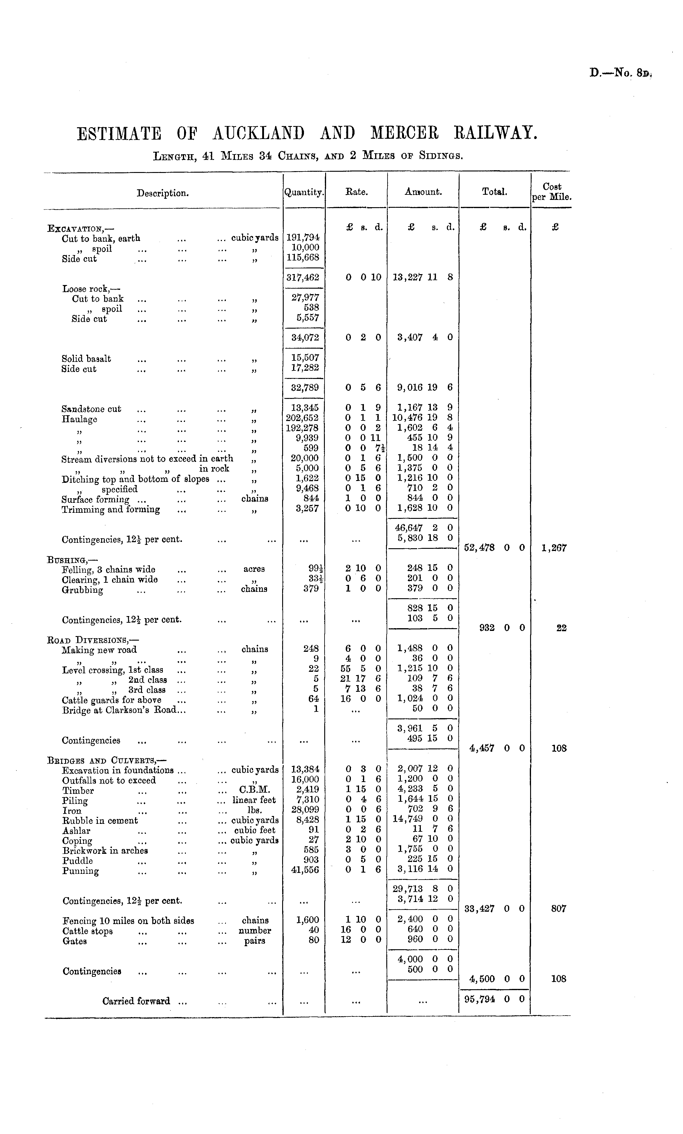 ESTIMATE OE AUCKLAND AND MERCER RAILWAY