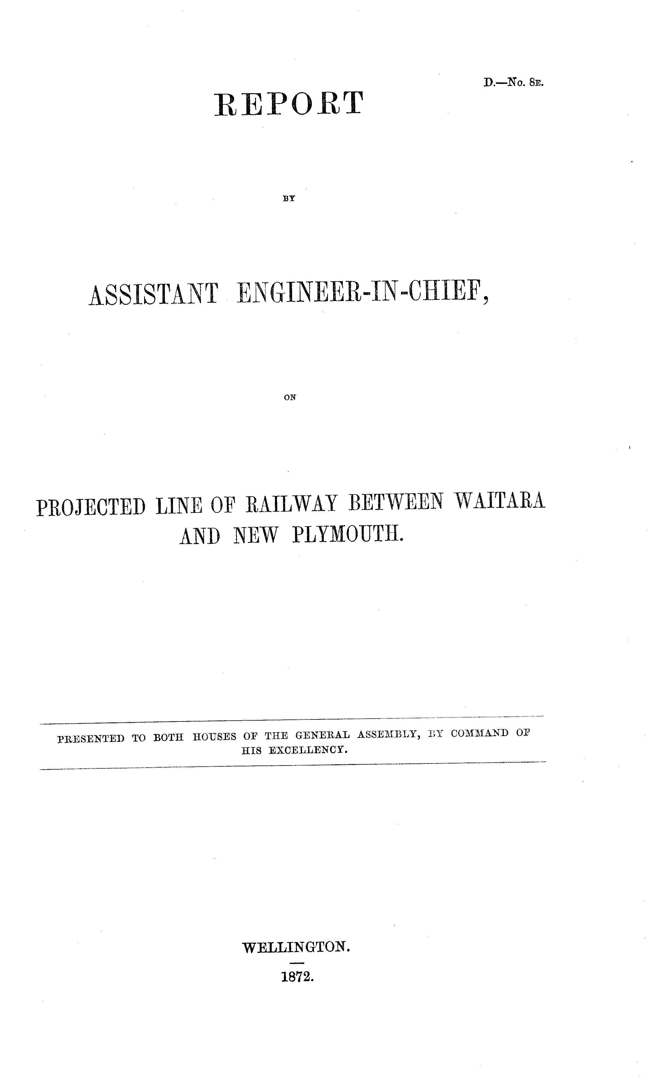 REPORT BY ASSISTANT ENGINEER-IN-CHIEF, ON PROJECTED LINE OF RAILWAY BETWEEN WAITARA AND NEW PLYMOUTH.