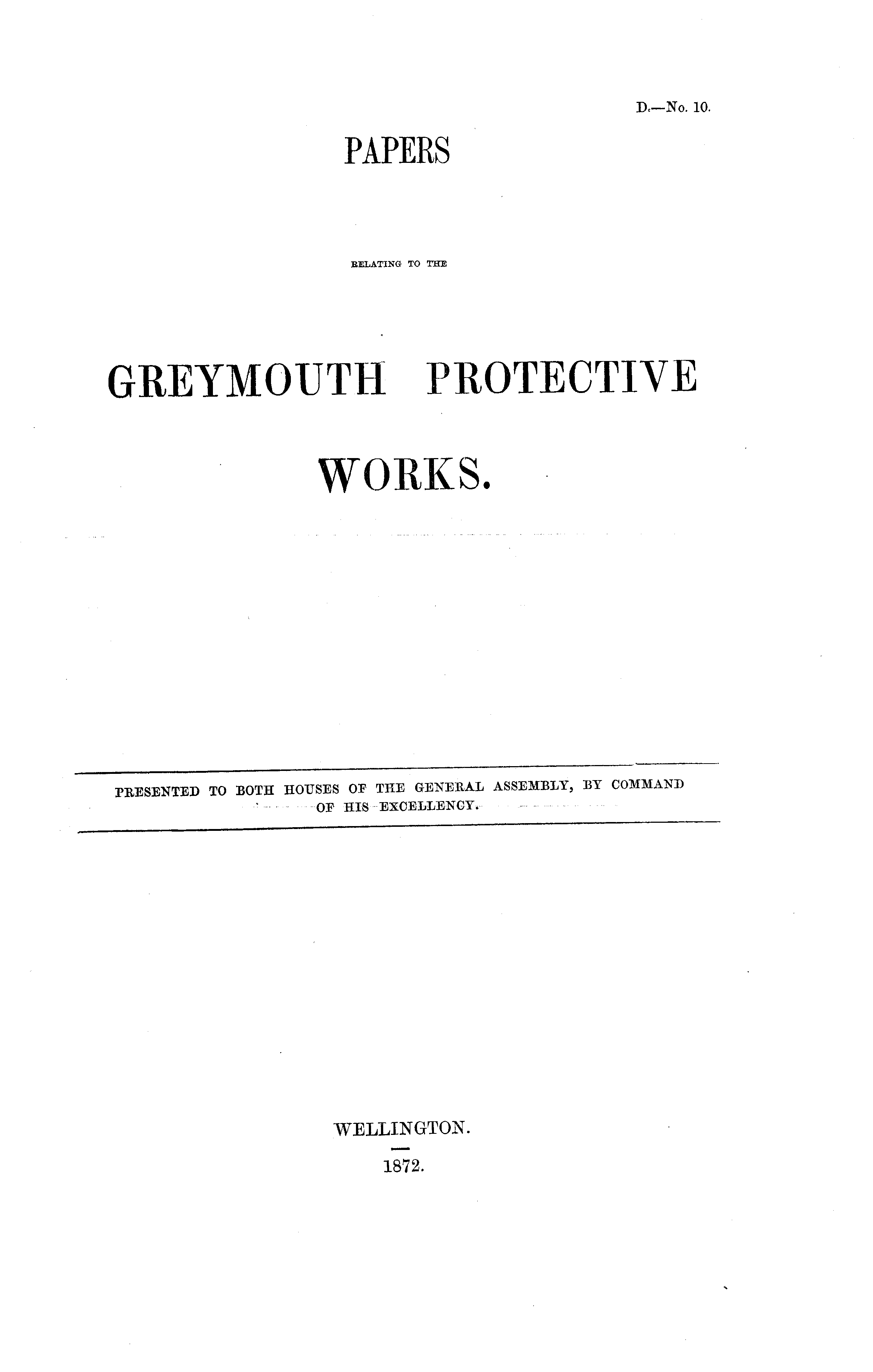 PAPERS RELATING TO THE GREYMOUTH PROTECTIVE WORKS.
