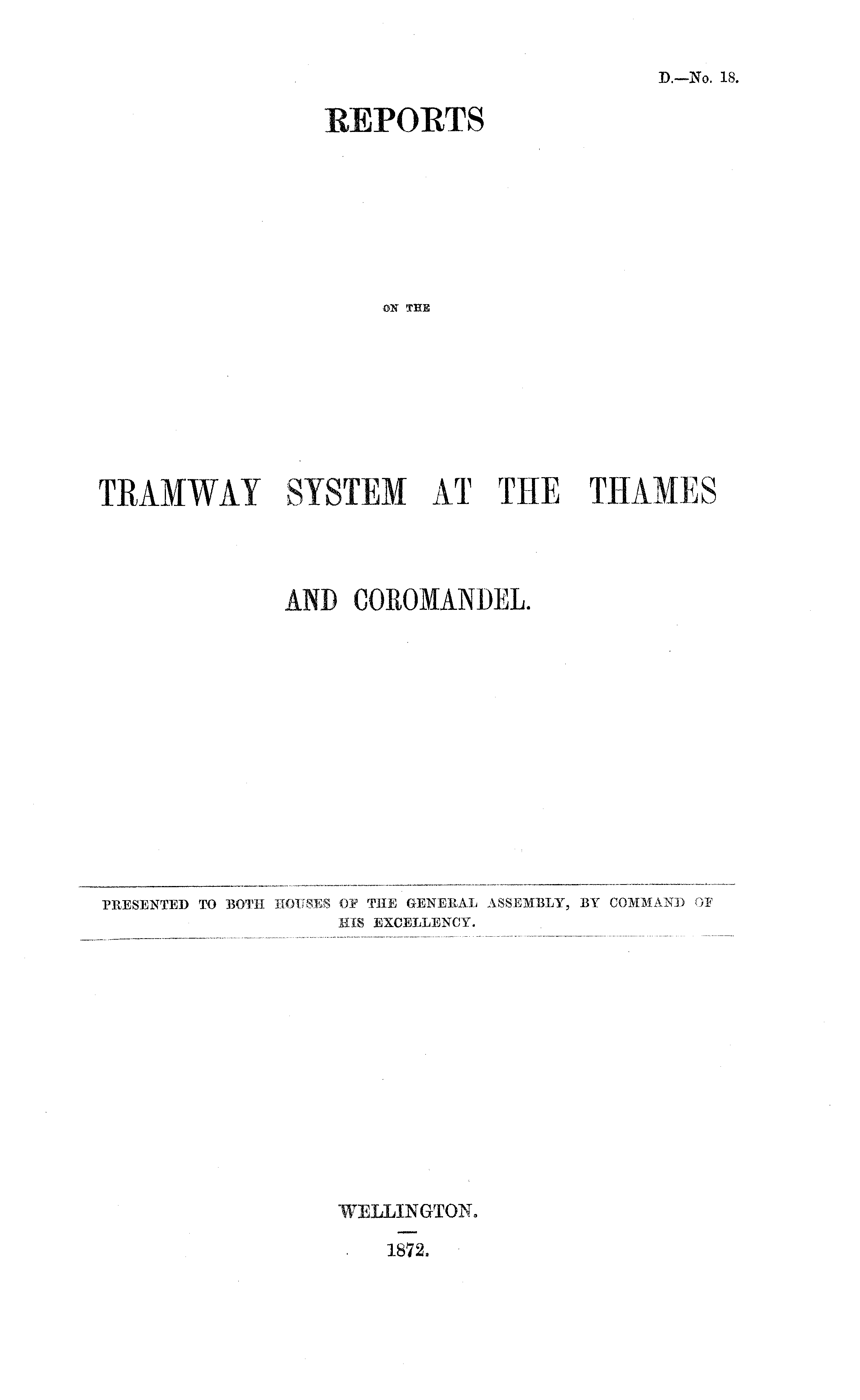 REPORTS ON THE TRAMWAY SYSTEM AT THE THAMES AND COROMANDEL.