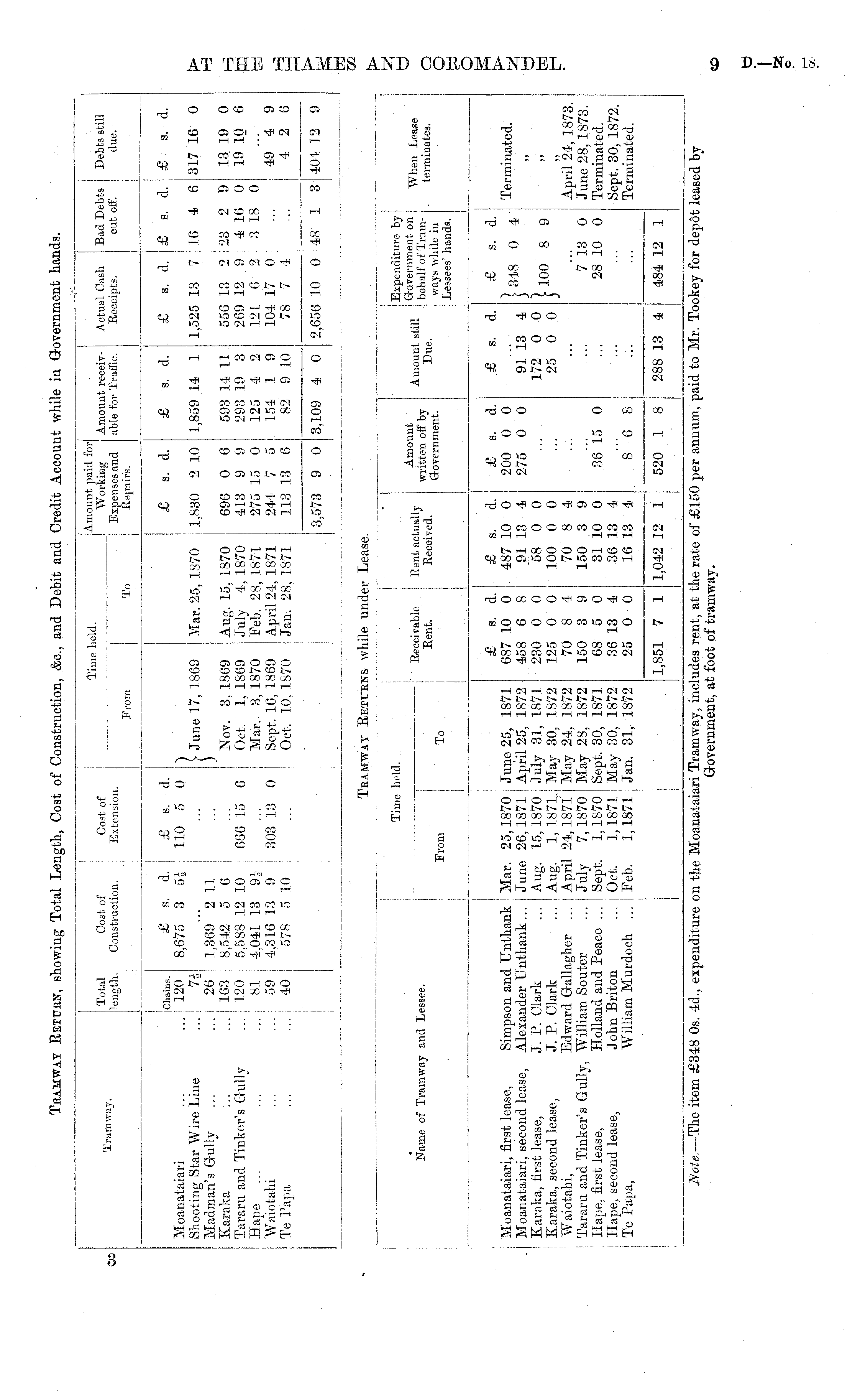 TRAMWAY RETURN, showing Total Length, Cost of Construction, &c, and Debit and Credit Account while in Government hands.