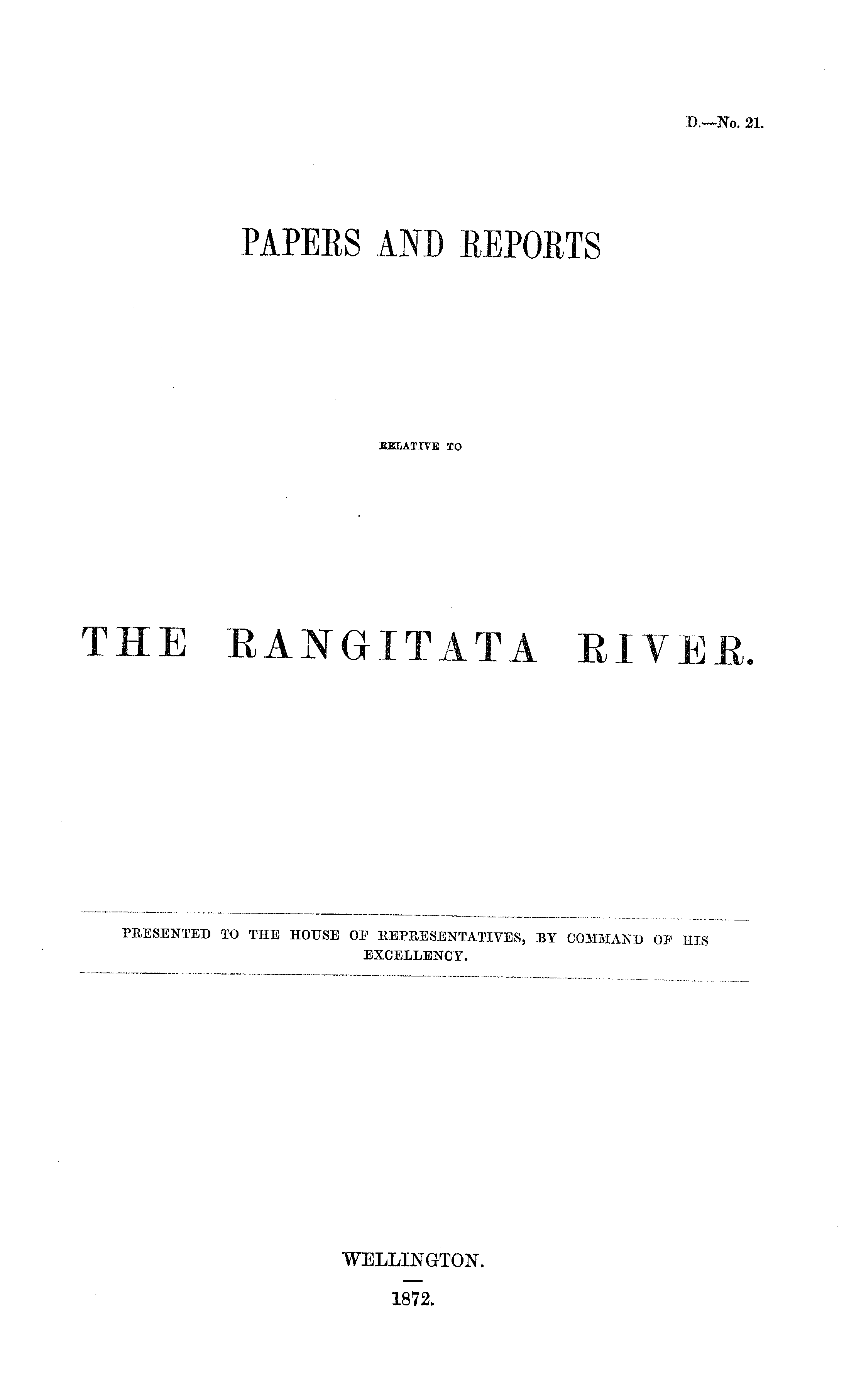 PRESENTED TO THE HOUSE OF REPRESENTATIVES, BY COMMAND OF HIS EXCELLENCY. WELLINGTON. 1872.