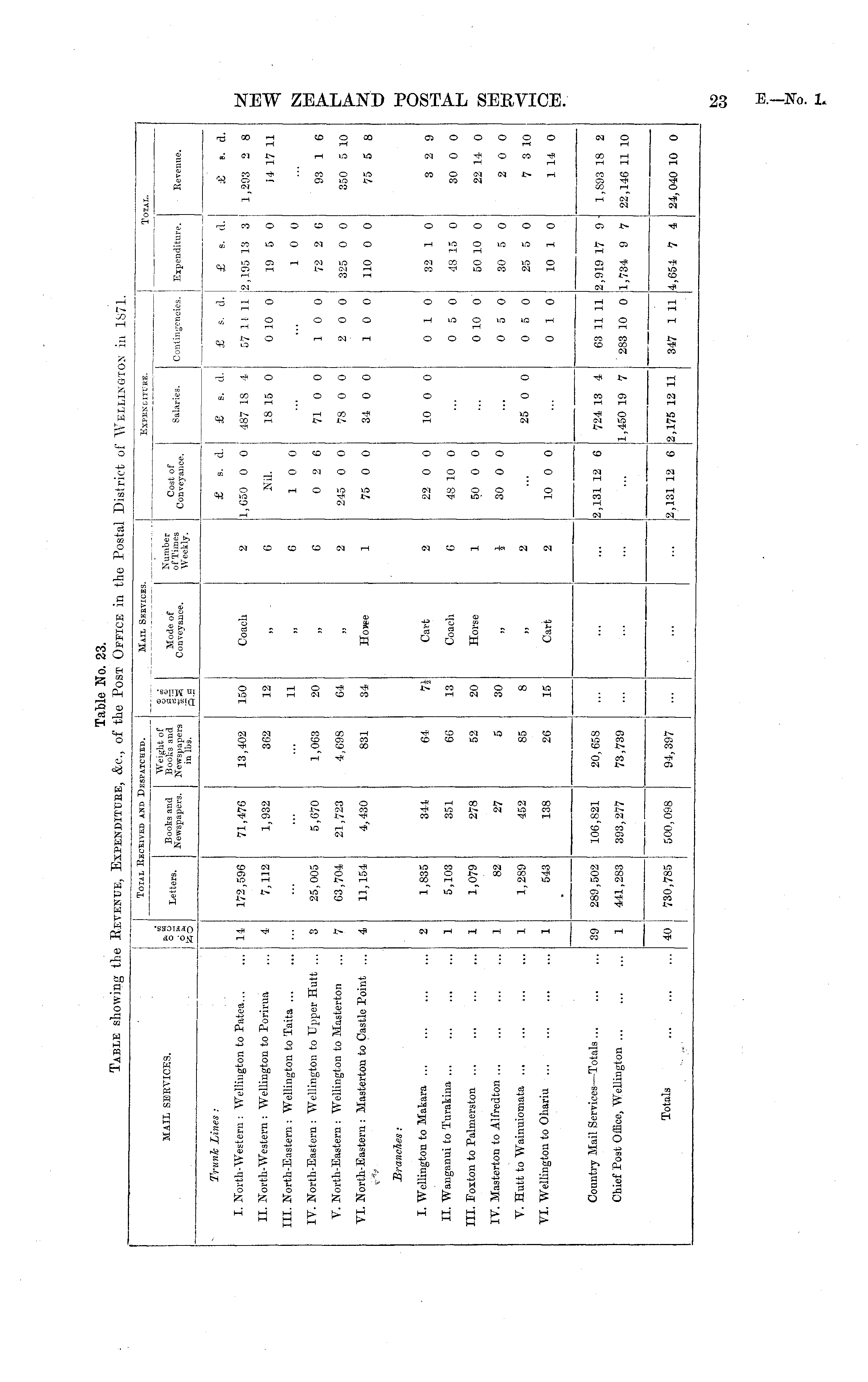 Table No. 23. TABLE showing the REVENUE, EXPENDITURE, &c, of the POST OFFICE in the Postal District of WELLINGTON in 1871.