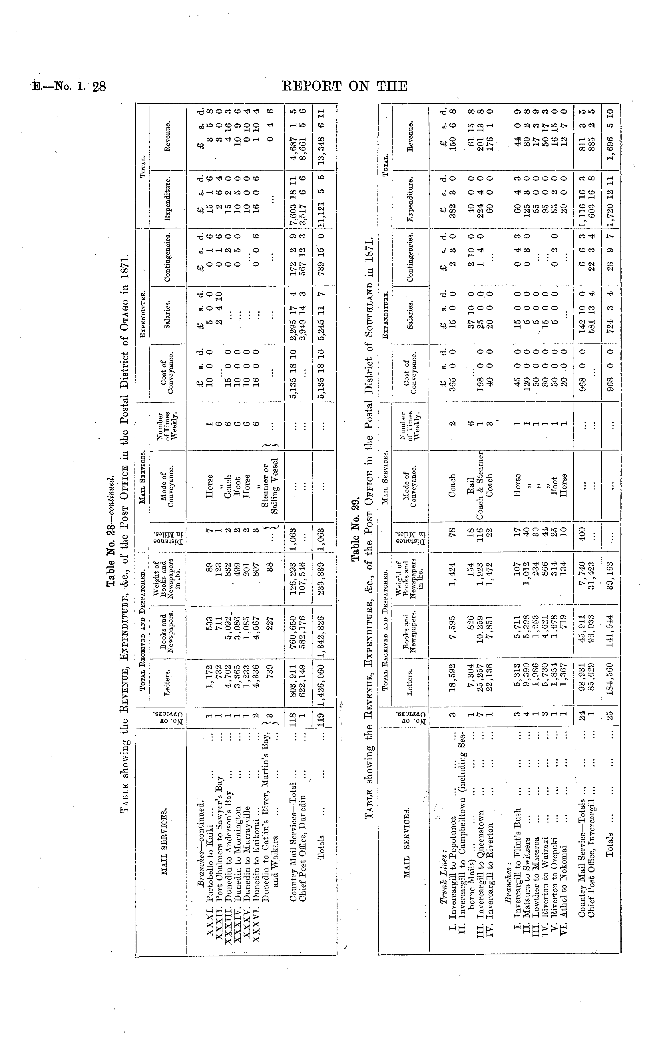 Table No. 29. TABLE showing the REVENUE, EXPENDITURE, &c, of the POST OFFICE in the Postal District of SOUTHLAND in 1871.