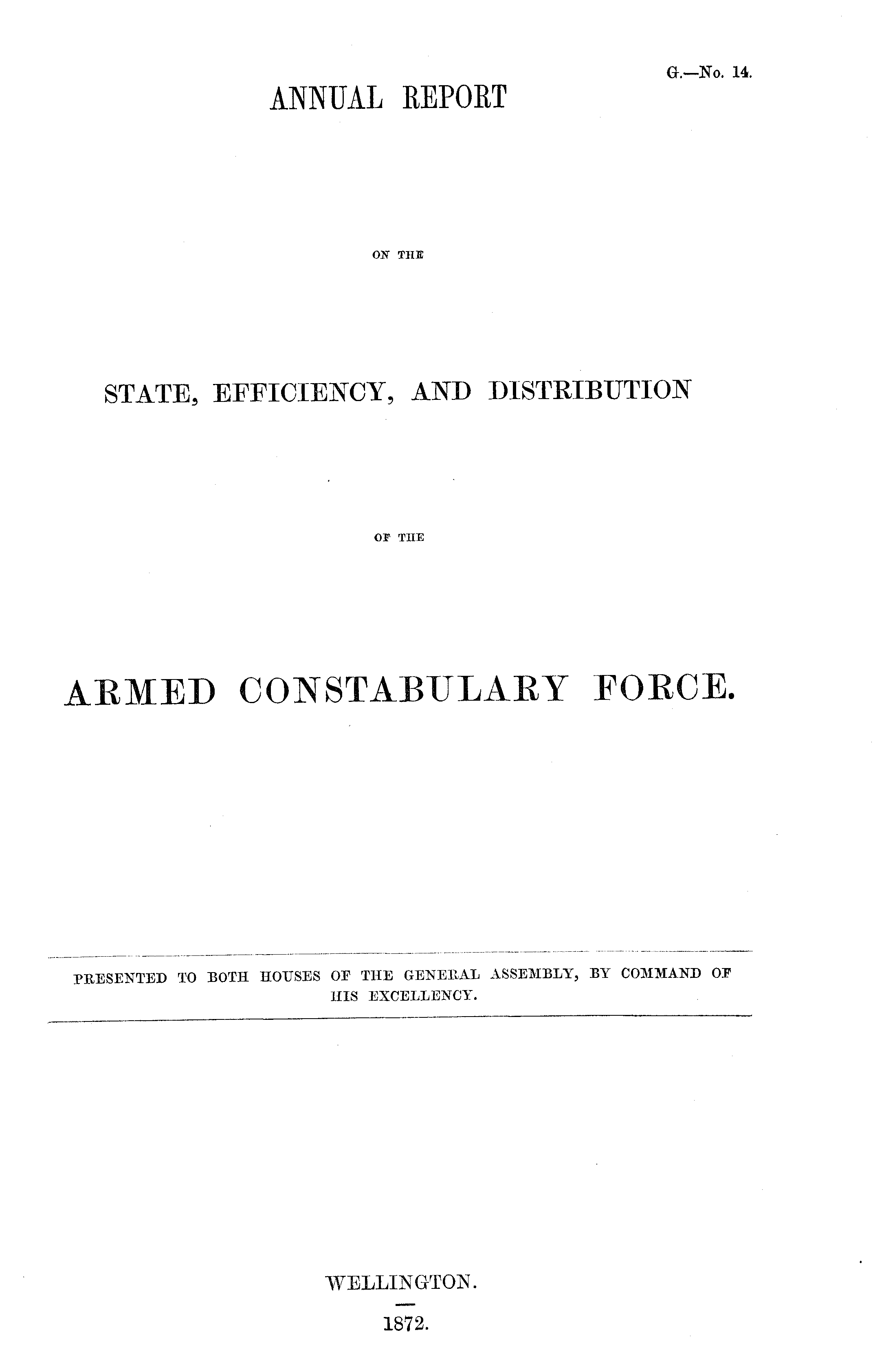 PRESENTED TO BOTH HOUSES OP THE GENERAL ASSEMBLY, BY COMMAND OT HIS EXCELLENCY. WELLINGTON. 1872.