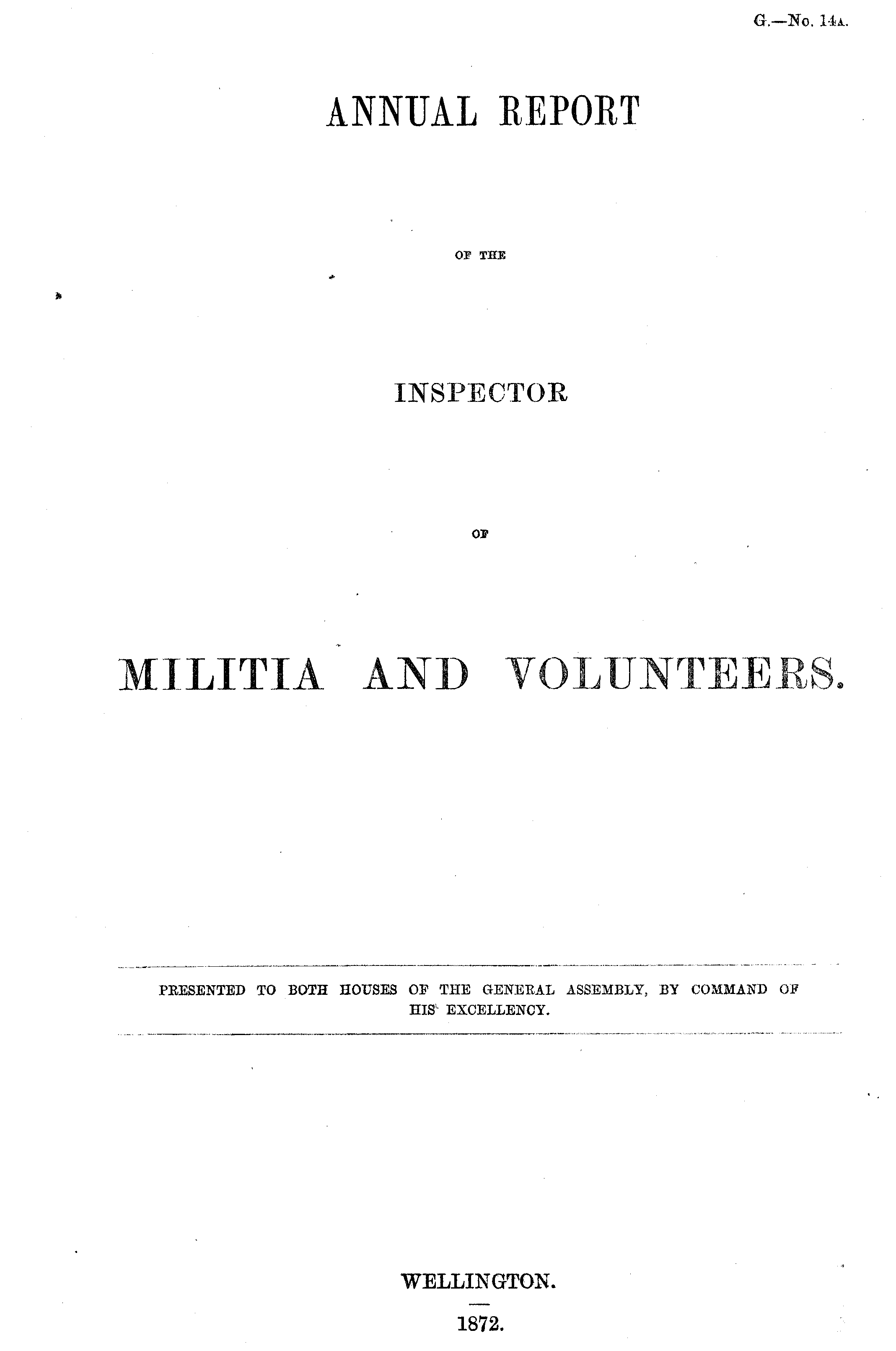 PRESENTED TO BOTH HOUSES OP THE GENERAL ASSEMBLY, BY COMMAND OB HIS 1 EXCELLENCY. WELLINGTON. 1872.