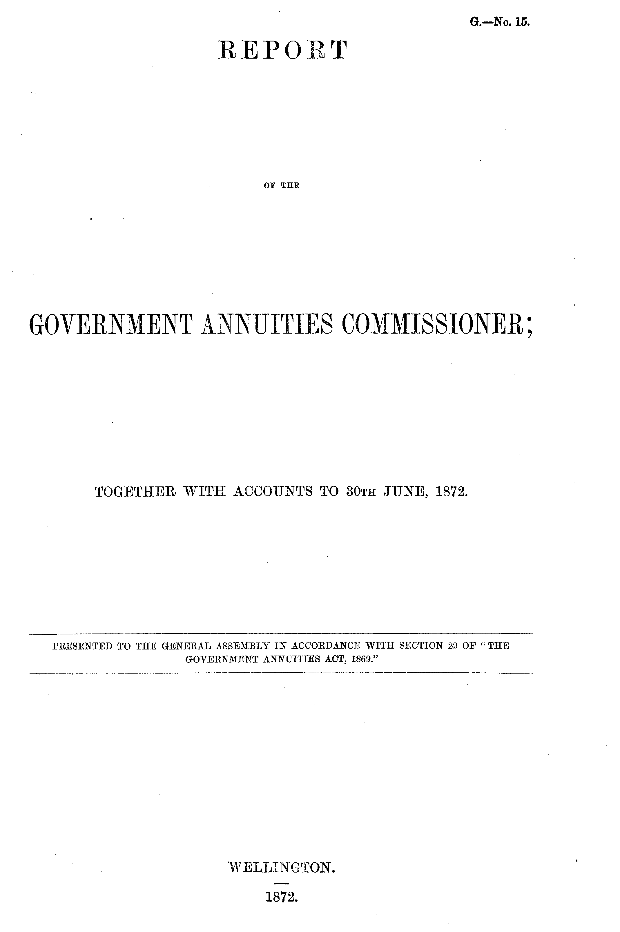 REPORT OF THE GOVERNMENT ANNUITIES COMMISSIONER;