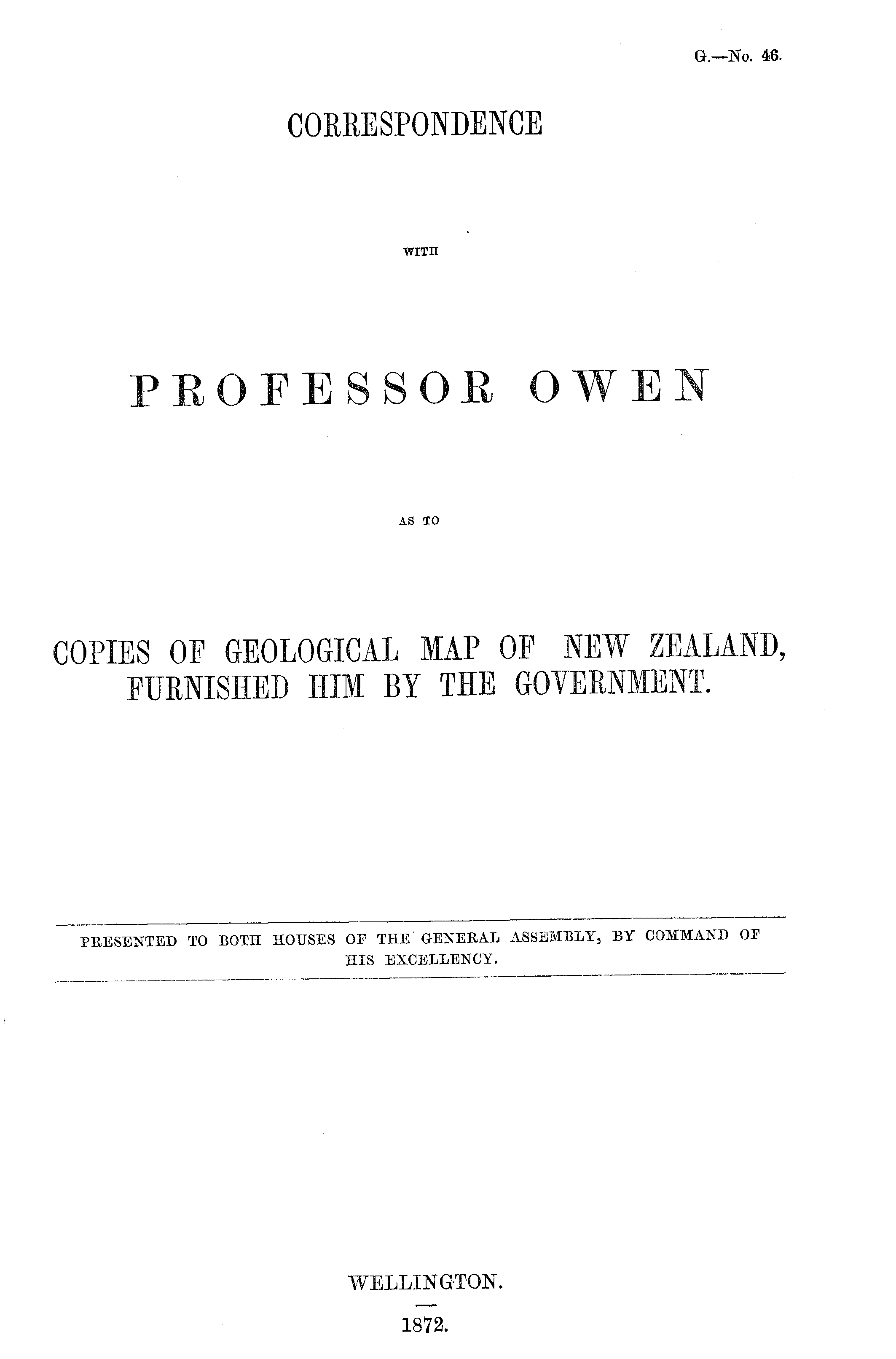 CORRESPONDENCE WITH PROFESSOR OWEN AS TO COPIES OF GEOLOGICAL MAP OF NEW ZEALAND, FURNISHED HIM BY THE GOVERNMENT.