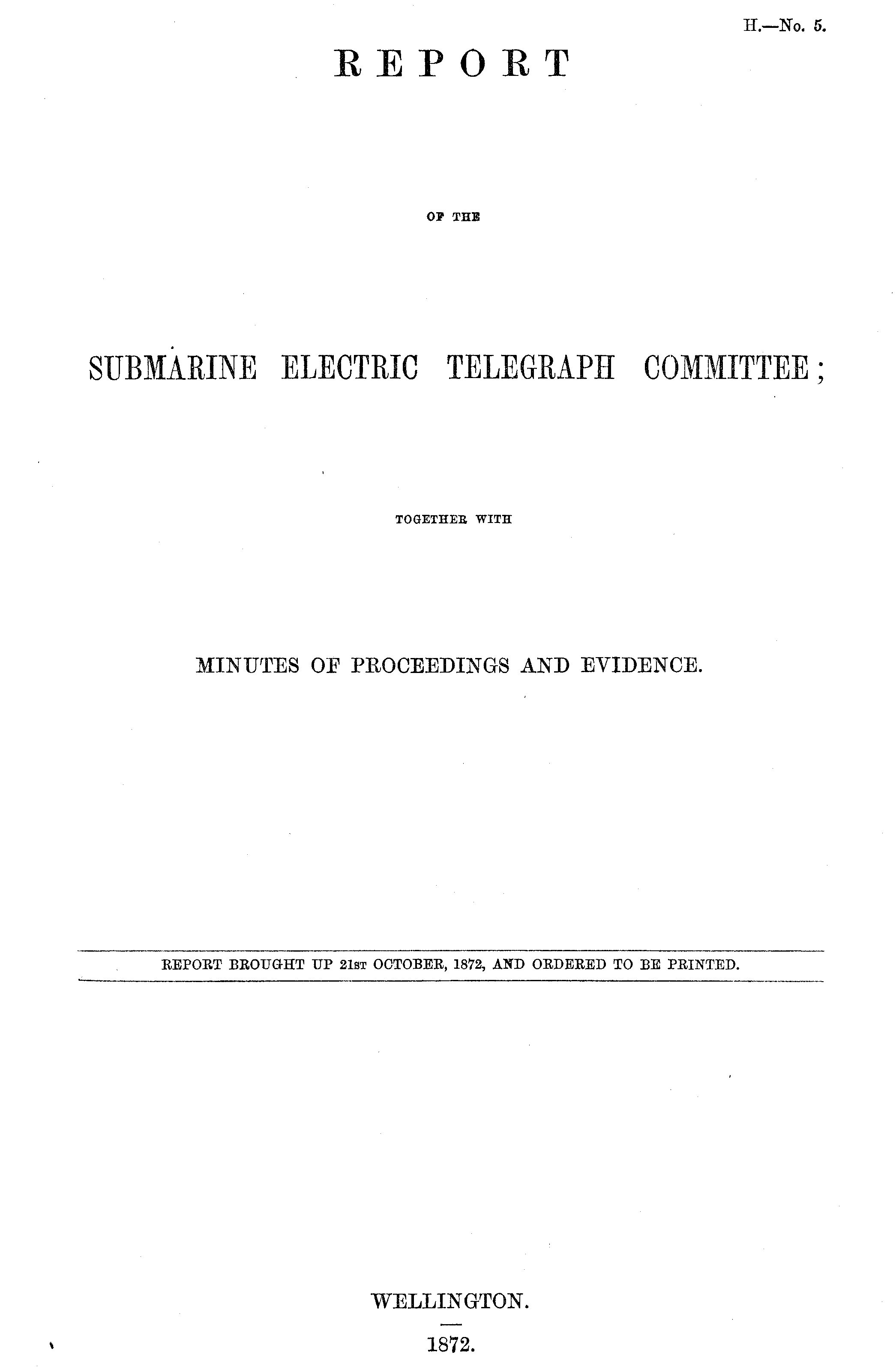 REPORT OF THE SUBMARINE ELECTRIC TELEGRAPH COMMITTEE; TOGETHER WITH MINUTES OF PROCEEDINGS AND EVIDENCE.