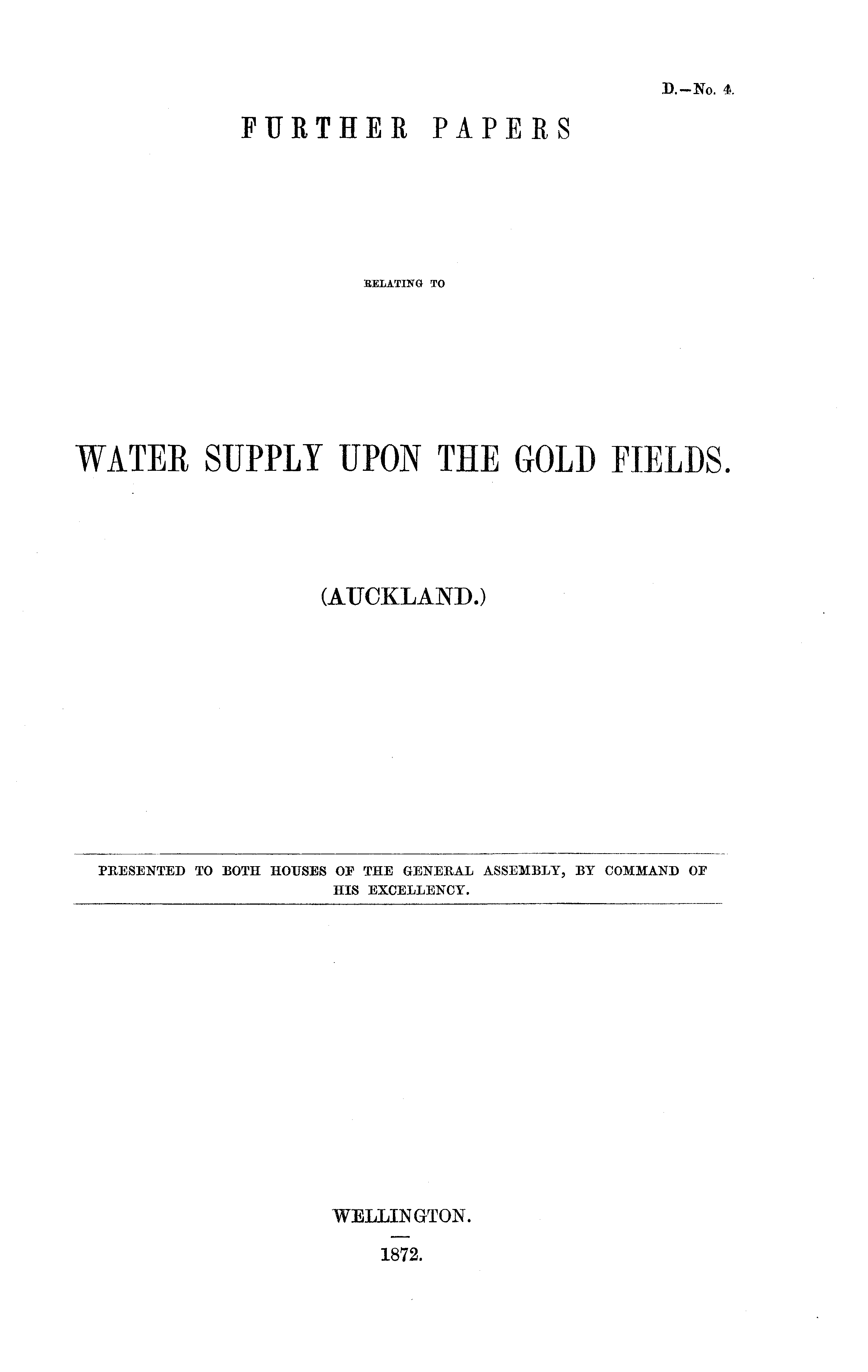 FURTHER PAPERS RELATING TO WATER SUPPLY UPON THE GOLD FIELDS. (AUCKLAND.)