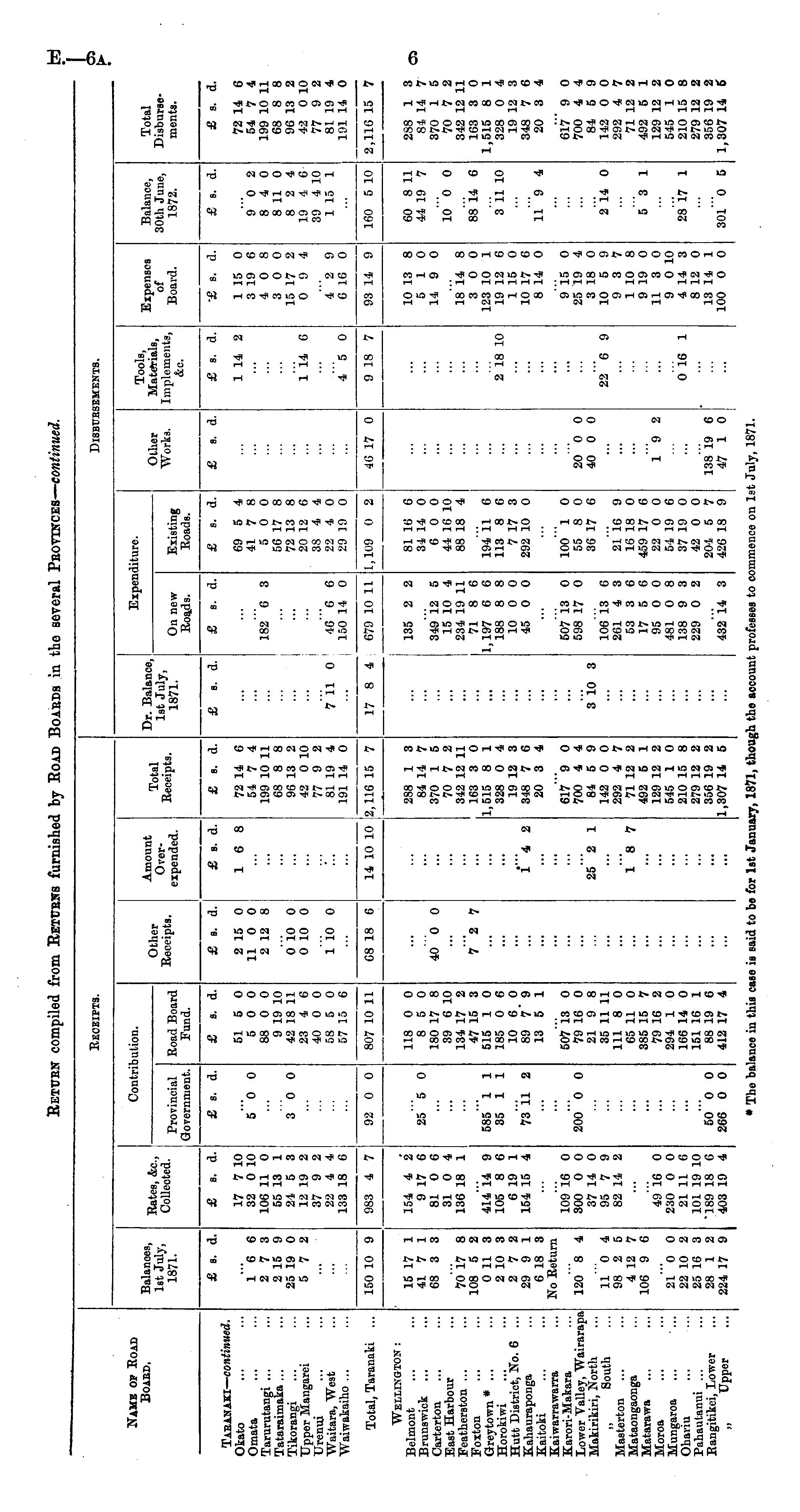 Receipts. DlSBTTBSEMENTS. Name op Boad Boaed, Contribution. Expenditure. Tools, Materials, Implement?, &c. Balances, 1st July, 1871." Rates, &c., ! Collected. ! Amount Overexpended. Total Receipts. Dr. Balance, 1st July, 1871. Other Works. Expenses of Board. Balance, 30th June, 1872. Total Disbursements. Provincial Government. Road Board Fund. Receipts. On new Roa_ds. Existing Roada. £ b. d. £ s. d. £ s. d. £ s. d. £ b. d. £ a. d. £ s. d. £ s. d. £ s. d. £ s. d. £ s. d. £ s. a. ■£ s. d. £ s. d. £ s. d. TaeANAKI — continued. Okato Omata Tarurutangi ... Tataraimaka ... Tikorangi Tipper Mangarei Tlrenui Waitara, West Waiwakaiho ... 16 6 2 7 3 2 15 9 25 19 0 5 7 2 17 7 10 32 0 10 106 11 0 55 13 1 21 5 3 12 19 2 37 9 2 22 4 4 133 18 6 5 0 0 3 0 0 51 5 0 5 0 0 88 0 0 9 19 10 42 18 11 23 4 6 40 0 0 58 5 0 57 15 6 2 15 0 11 0 0 2 12 8 o'io o o 10 o 16 8 ... 72 14 6 54 7 4 199 10 11 68 8 8 96 13 2 42 0 10 77 9 2 81 19 4 191 14 0 182 G 3 69 5 4 41 7 8 5 0 0 56 17 8 72 13 8 20 12 6 3S 4 4 22 4 0 29 19 0 1 14 2 1 14 6 1 15 0 3 19 6 4 0 8 3 0 0 15 17 2 0 9 4 9 0 2 8 4 0 8 11 0 8 2 4 19 4 6 39 4 10 1 15 1 72 14 6 54 7 4 199 10 11 68 8 8 96 13 2 42 0 10 77 9 2 81 19 4 101 14 0 1 10 0 7 11 0 46 6 6 150 14 0 i"*B 0 4 2 9 6 16 0 ... Total, Taranaki ... 2,116 15 7 9 18 7 2,116 15 7 150 10 9 983 4 7 92 0 0 807 10 11 68 18 6 14 10 10 17 8 4 679 10 11 1,109 0 2 40 17 0 93 14 9 160 5 10 Wellington : Belmont Brunswick Carterton East Harbour Feathereton ... Foxton Grey town * ... Horokiwi Hutt District, No. 6 ... Kahauraponga Kaitoki Kaiwarrawarra Karori-Makara Lower Valley, Wairarapa Makirikiri, North. „ South Masterton Mataongaonga Matarawa Moroa Mungaroa Ohaviu Pahaulanui ... Eangitikei, Lower tipper 15 17 1 41 7 1 68 3 3 70 17 8 108 5 2 0 11 3 2 10 3 2 7 2 29 9 1 6 18 3 No Return 154 4 2 9 17 6 81 0 6 31 0 4 136 18 1 414 14 9 105 8 6 6 19 1 154 15 4 109 16 0 300 0 0 37 14 0 95 7 9 82 14 2 25"5 0 I 585 1 1 35 1 1 73 11 2 118 0 0 8 5 0 180 17 8 40 0 0 39 6 10 134 17 2 47 15 3 7 2 7 515 1 0 185 0 6 10 6 0 89 7" 9 13 5 1 507 13 0 79 16 0 21 9 8 35 11 11 111 8 0 65 11 0 385 15 7 79 16 2 294 1 0 166 14 0 151 16 1 88 19 6 412 17 4 l"4 2 288 1 3 84 14 7 370 1 5 70 7 2 342 12 11 163 3 0 1,515 8 1 328 0 4 19 12 3 348 7 6 20 3 4 617 9 0 700 4 4 84 5 9 142 0 0 292 4 7 71 12 2 492 5 1 129 12 2 545 1 0 210 15 8 279 12 2 356 19 2 1,307 14 5 ... ... I 135 2 2 349 12 5 15 10 4 234 19 11 71 8 6 1,197 6 6 188 8 8 10 0 0 45 0 0 507 13 0 598 17 0 81 16 6 31 14 0 6 0 0 41 16 10 88 18 4 194 11 6 113 8 6 7 17 3 292 10 0 100 1 0 55 8 0 36 17 6 ... ... ... 2 18 10 10 13 8 5 10 14 9 0 18 14 8 3 0 0 123 10 1 19 12 6 1 15 0 10 17 6 8 14 0 9 15 0 25 19 4 3 18 0 10 5 9 9 3 7 1 10 8 9 19 0 11 3 0 9 0 10 4 14 3 8 12 0 13 14 1 100 0 0 60 8 11 44 19 7 10 0 0 88 14 6 3 11 10 11 9 4 288 1 i 81 14 ' 370 1 ! 70 7 : 342 12 i: 163 3 ( 1,515 8 : 328 0 ■ 19 12 : 348 7 I 20 3 • 617 9 I 700 4 ■ 84 5 ! 142 0 I 292 4 ! 71 12 : 492 5 : 129 12 : 545 1 I 210 15 I 279 12 : 356 19 : 1,307 14 I 120"8 4 200" 0 0 20 "o 0 40 0 0 25 2 1 310 3 22 " 6 9 2 14 0 11 0 4 98 2 5 4 12 7 106 9 6 l"'8 7 106 13 6 261 4 3 53 3 6 17 5 6 95 0 0 481 0 8 138 9 3 229 0 2 21 16 9 16 18 0 459 17 6 22 0 0 54 19 6 37 19 0 42 0 0 204 5 7 426 18 9 5 3 1 21 0 0 22 10 2 25 16 3 28 1 2 224 17 9 49 16 0 230 0 0 21 11 6 101 19 10 "189 18 6 403 19 4 ... 19 2 0 16 1 28 17 1 50 0 0 266 0 0 432 14 3 138 19 6 47 1 0 301 0 5 * The bal ;ncc in this case is said to b< for 1st Janui ry, 1871, thou| ;h the account professes to c immenco on li it July, 1871.