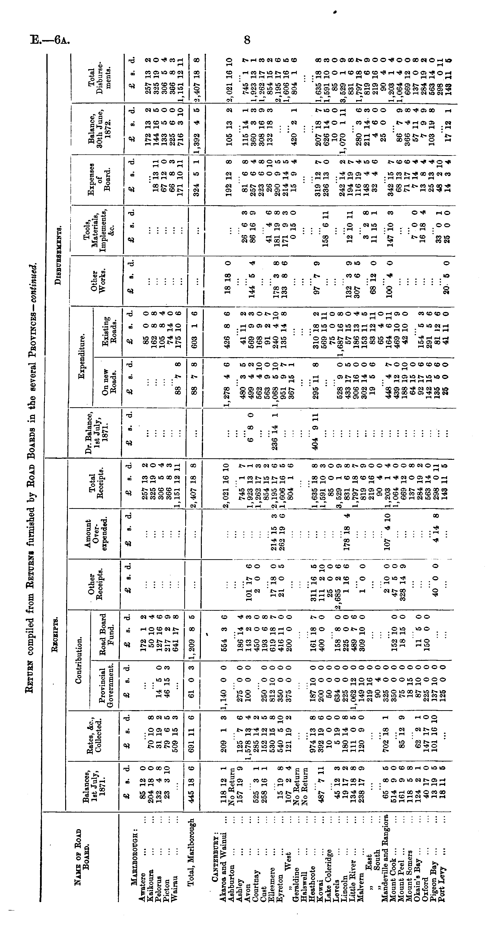 Ietitbn compi] :rom .ETUEN8 furnished by Road Boards in the several Peovinces— continued.