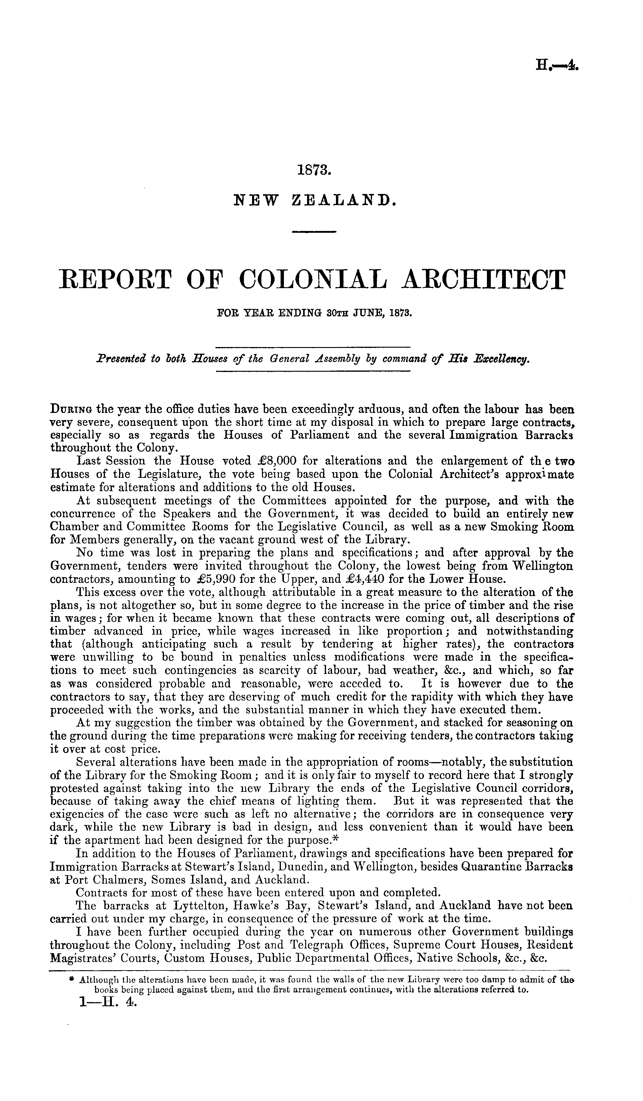 REPORT OF COLONIAL ARCHITECT FOR YEAR ENDING 30TH JUNE, 1873.
