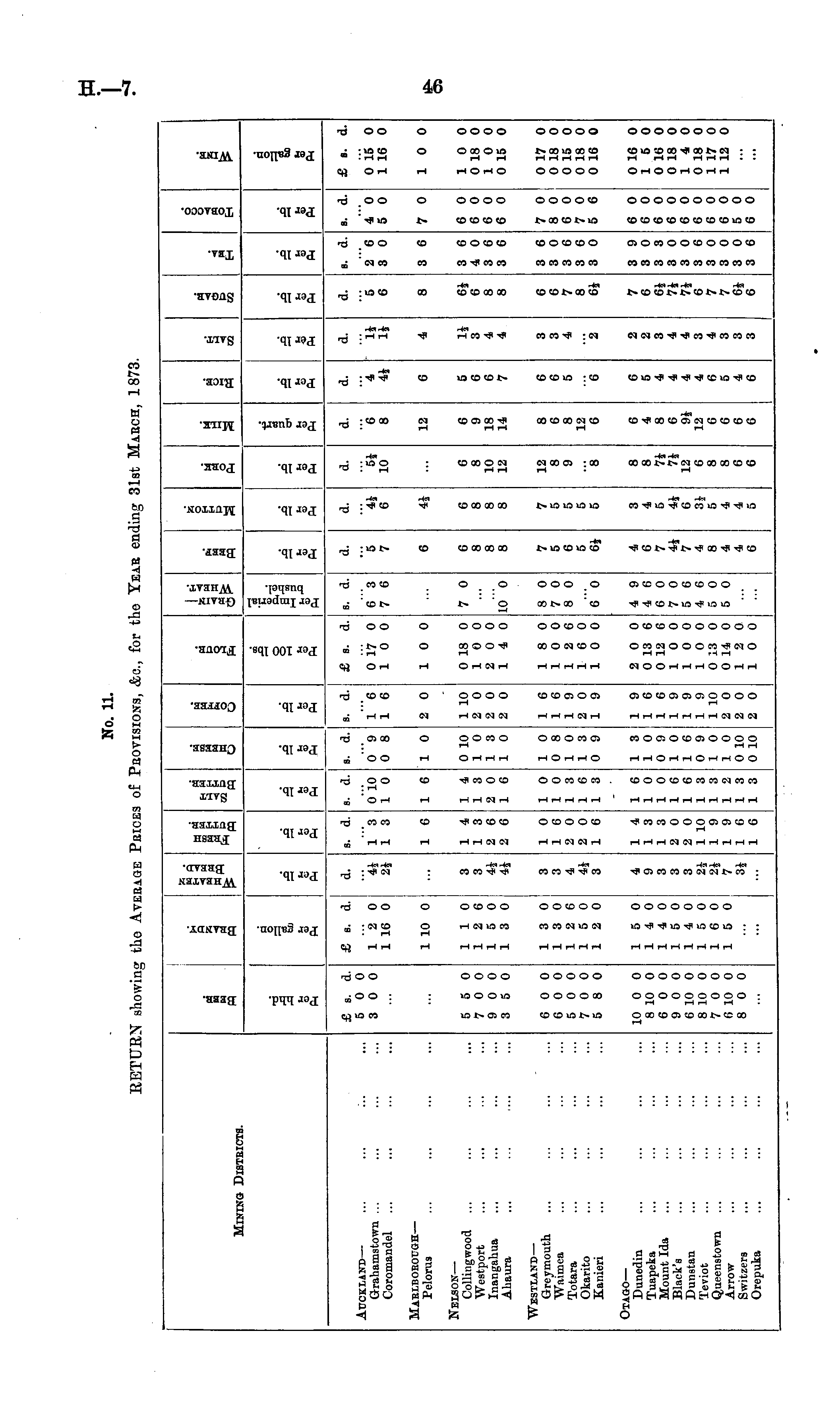 No. 11. RETURN showing the AVERAGE PRICES of PROVISIONS, &c., for the YEAR ending 31st MARCH, 1873.