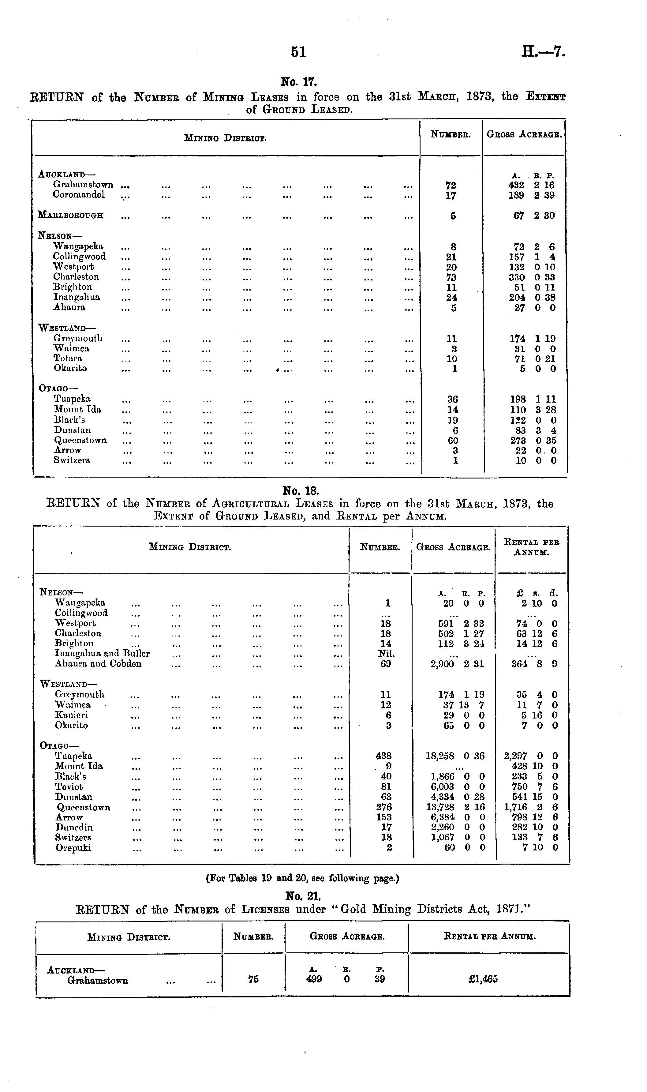 No. 17. RETURN of the NUMBER of MINING LEASES in force on the 31st MARCH, 1873, the EXTENT of GROUND LEASED.