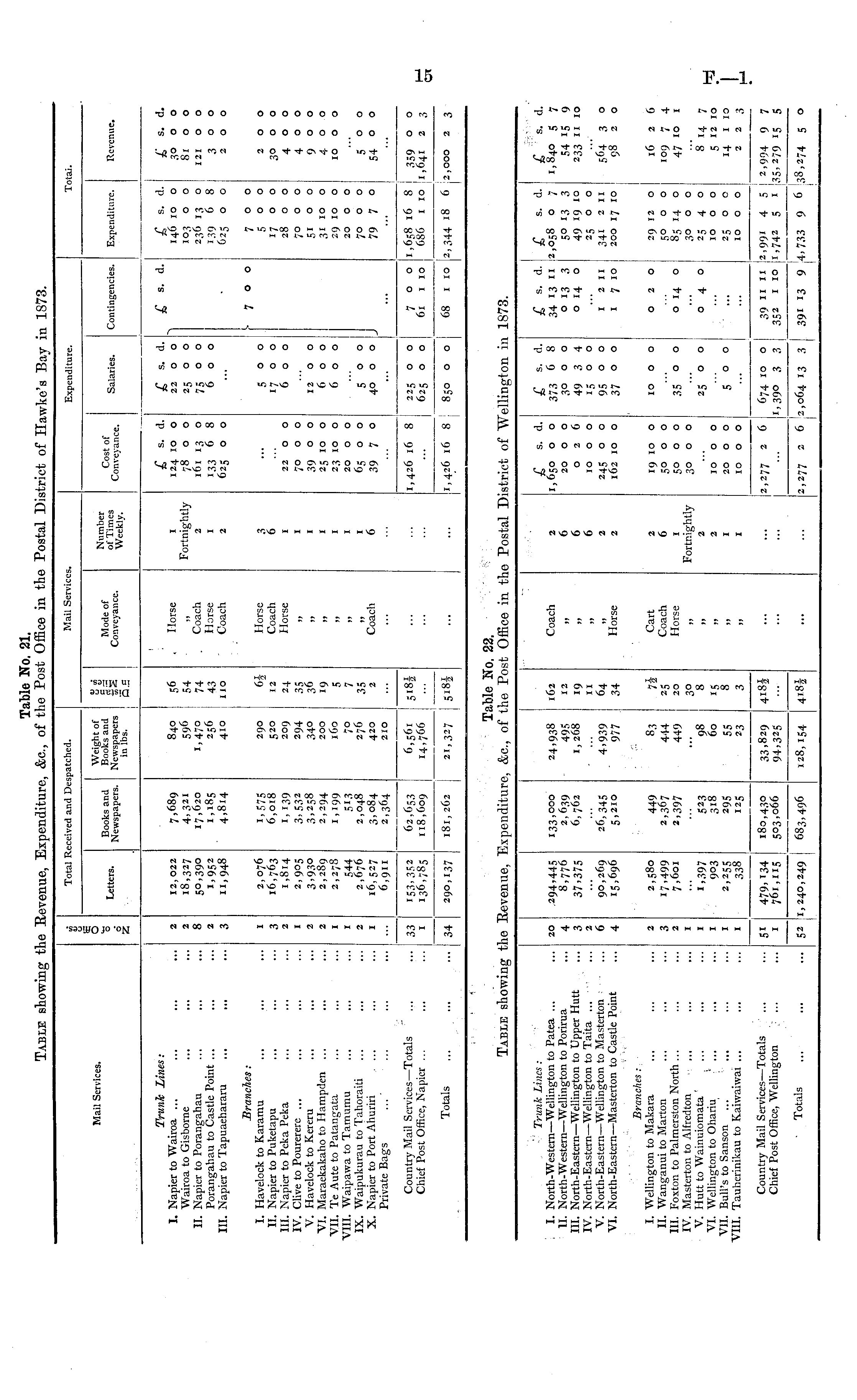 Table No. 21. TABLE showing the Revenue, Expenditure, &c., of the Post Office in the Postal District of Hawke's Bay in 1873.