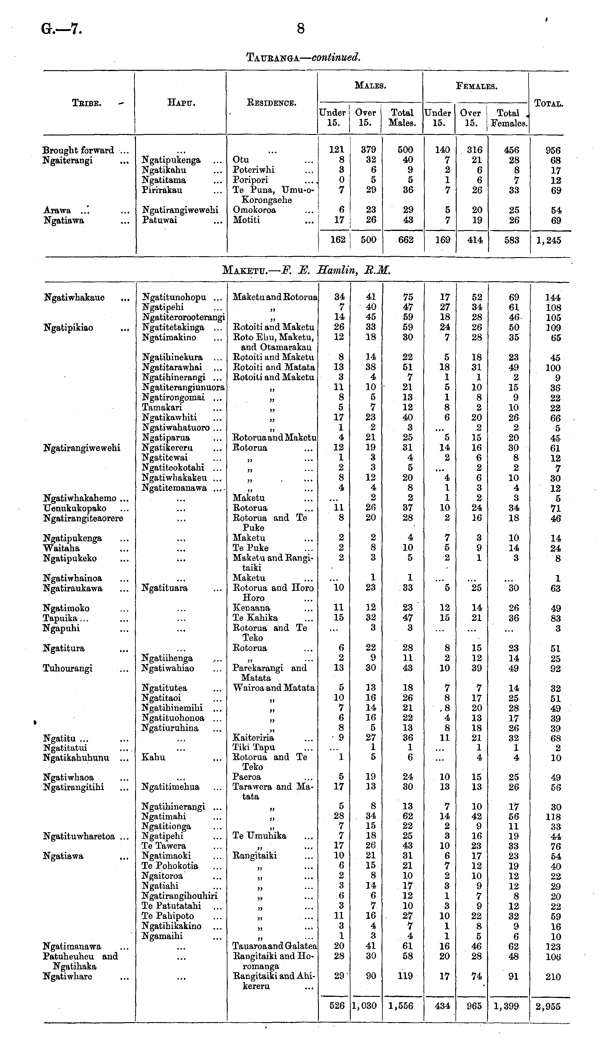 Taukanga— ct mtinued. Males. Females. Teibe. Haptj. Residence. Total. Under | Over Total 15. 15. Males. Under Over Total . 15. 15. Females. Brought forward ... Ngaiterangi Ngatipukenga Ngatikahu Ngatitama Pirirakau Otu Poteriwhi Poripori Te Puna, Umu-o-Korongaelie Omokoroa Motiti 121 8 3 0 7 379 32 6 5 29 500 40 9 5 36 140 7 2 1 7 316 21 6 6 26 456 28 8 7 33 956 68 17 12 69 Arawa ... Ngatiawa Ngatirangiwewehi Patuwai 6 17 23 26 29 43 5 7 20 19 25 26 54 69 162 500 662 169 414 583 1,245 Maketu. — F. J£. Hainli', ,B. Ngatiwhakaue Ngatipikiao Ngatitunohopu ... Ngatipehi Ngatiterorooterangi Ngatitetakinga ... Ngatimakino Maketu and Rotorua >> Rotoiti and Maketu Roto Ehu, Maketu, and Otamarakau Rotoiti and Maketu Rotoiti and Matata Rotoiti and Maketu 34 7 14 26 12 41 40 45 33 18 75 47 59 59 30 17 27 18 24 7 52 34 28 26 28 69 61 46 50 35 144 108 105 109 65 Ngatihinekura Ngatitarawhai Ngatihinerangi ... Ngatiterangiunuora Ngath'ongomai ... Tamakari Ngatikawhiti Ngatiwahatuoro ... Ngatiparua Ngatikereru Ngatite wai Ngatiteokotahi ... Ngatiwhakakeu ... Ngatitemanawa ... ■ >> 8 13 3 11 8 5 17 1 4 12 1 2 8 4 14 38 4 10 5 7 23 2 21 19 3 3 12 4 2 26 20 22 51 7 21 13 12 40 3 25 31 4 5 20 8 2 37 28 5 18 1 5 1 8 6 18 31 1 10 8 2 20 2 15 16 6 2 6 3 2 24 16 23 49 2 15 9 10 26 2 20 30 8 2 10 4 3 34 18 45 100 9 36 22 22 66 5 45' 61 12 7 30 12 5 71 46 ,j 5J Ngatirangiwewehi >> Rotorua and Maketu Rotorua 5 14 2 ,, Ngatiwhakahemo ... TJemikukopako Ngatirangiteaorero ,, ,, . ... Maketu Rotorua Rotorua and Te Puke Maketu Te Puke Maketu and Rangitaiki Maketu Rotorua and Horo Horo Eenaana Te Kahika Rotorua and Te Teko Rotorua "ii 8 4 1 1 10 2 Ngatipukenga Waitaha Ngatipukeko 2 2 2 2 8 3 4 10 5 7 5 2 3 9 1 10 14 3 14 24 8 Ngatiwhainoa If gatiraukawa Ngatituara 10 1 23 1 33 5 "25 "30 1 63 Ngathnoko Tapuika... Ngapuhi 11 15 12 32 3 23 47 3 12 15 14 21 26 36 49 83 3 Ngatitura Ngatiihenga Ngatnvahiao Parekarangi and Matata Wairoa and Matata 6 2 13 22 9 30 28 11 43 8 2 10 15 12 39 23 14 49 51 25 92 Tuhourangi 5 10 7 6 8 9 13 16 14 16 5 27 1 5 18 26 21 22 13 36 1 6 7 8 8 4 8 11 7 17 20 13 18 21 1 4 • Ngatitutea Ngatitaoi Ngatihinemihi Ngatituohonoa ... Ngatiuruhina ,j >» 14 25 28 17 26 32 1 4 32 51 49 39 39 68 2 10 Ngatitu ... Ngatitatui ... . Ngatikahuhunu Kahu Kaiteriria TikiTapu Rotorua and Te Teko Paeroa Tarawera and Matata 1 15 13 Ngatiwhaoa Ngatirangitihi Ngatitimehua 5 17 19 13 24 30 10 13 25 26 49 56 Ngatituwharetoa ... Ngatiawa Ngatihinerangi ... Ngatimahi Ngatitionga Ngatipehi Te Tawera Ngatimaoki TePohokotia ... Ngaitoroa Ngatiahi Ngatirangibouhiri Te Patutatahi ... TePahipoto Ngatihikakino Ngamailii j> ,, TeUmuhika ,, ... Rangitaiki ,, ... 5 28 7 7 17 10 6 2 a 6 3 11 3 1 20 28 8 34 15 18 26 21 15 8 14 6 7 16 4 3 41 30 13 62 22 25 43 31 21 10 17 12 10 27 7 4 61 58 7 14 2 3 10 6 7 2 3 1 3 10 1 1 16 20 10 42 9 16 23 17 12 10 9 7 9 22 8 5 46 28 17 56 11 19 33 23 19 12 12 8 12 32 9 6 62 48 30 118 33 44 76 54 40 22 29 20 22 59 16 10 123 100 Ngatimanawa Patuheuheu and Ngatihaka Ngatiwhare Tauaroa and Galatea Rangitaiki and Horomanga Rangitaiki and Ahikereru 29 90 119 17 74 91 210 526 1,030 1,556 434 965 1,399 2,955