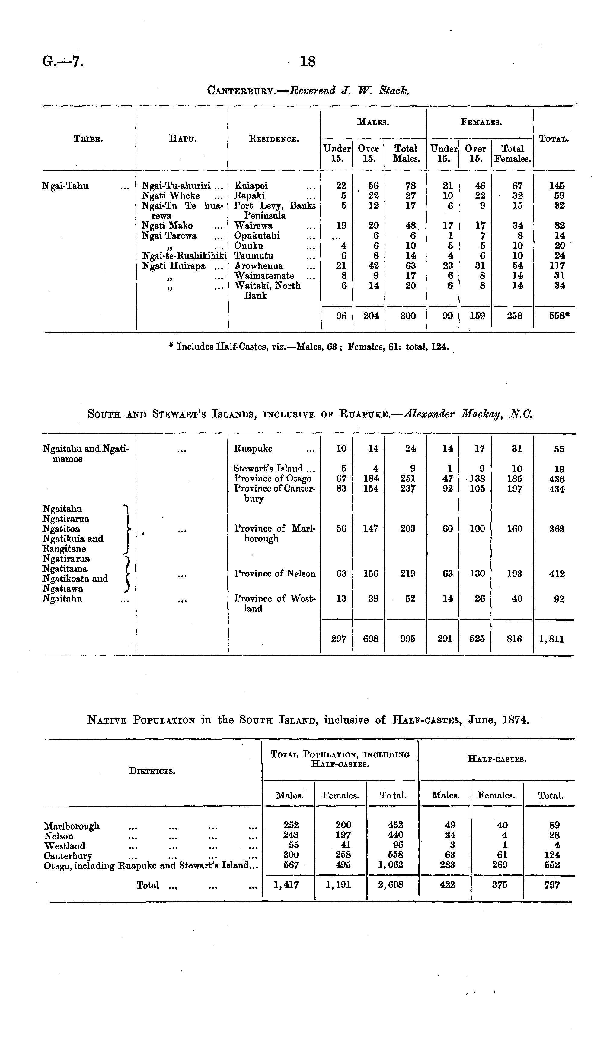 Males. Females. Tbibe. Hapu. Residence. Total. Under' Over Total 15. 15. Males. Under Over Total 15. 15. Females. gai-Tanu Ngai-Tu-ahuriri ... Ngati Wheke ... Ngai-Tu Te huarewa Ngati Mako Ngai Tarewa Kaiapoi Rapaki Port Levy, Banks Peninsula Wairewa Opukutahi Onuku Taumutu Arowhenua Waimatemate Waitaki, North Bank 22 5 5 19 4 6 21 8 6 56 22 12 29 6 6 8 42 9 14 78 27 17 48 6 10 14 63 17 20 21 10 6 17 1 5 4 23 6 6 46 22 9 17 7 5 6 31 8 8 67 32 18 3i 8 10 10 64 14 14 145 59 32 82 14 20 24 117 31 34 Ngai-te-Ruahikihiki Ngati Huirapa ... »> •*• a •'• 204 96 300 99 159 258 558* * Includes Hi ilf-Castes, viz.—Males, 63 ; E Females, 61: total, , 124. Stewaet's Isi ,ANDS, rNCLTJSIYE OF Et tTAPUKE. — Alex lander Mackay, N~.C. South a: Jgaitahu and Ngatimanioc Euapuke 10 14 24 14 17 31 55 Stewart's Island ... Province of Otago Province of Canterbury 5 67 83 4 184 154 9 251 237 1 47 92 9 138 105 10 185 197 19 436 434 Jgaitahu fgatirarua Igatitoa Igatikuia and tangitane fgatirarua ~\ Igatitama f fgatikoata and ( Jgatiawa J f gaitahu Province of Marlborough 56 147 203 60 100 160 363 Province of Nelson 193 412 63 156 219 63 130 Province of Westland 13 39 52 14 26 40 92 297 698 995 291 525 816 1,811 Native Population in the So 'H Islatt i, inclusive of Hal: '-castes, June, 1874. Total P. ip0lation, i: Salf-castes. :oiuding-jixf-caste: Districts. Males. Females. Total. Males. Females. Total. Marlborough Nelson Westland Canterbury Otago, including Ruapuke and Stewart's Island... 252 243 55 300 567 200 197 41 258 495 452 440 96 558 1,062 49 24 3 63 283 40 4 1 61 269 89 28 4 124 552 Total ... 375 797 1,417 1,191 2,608 422