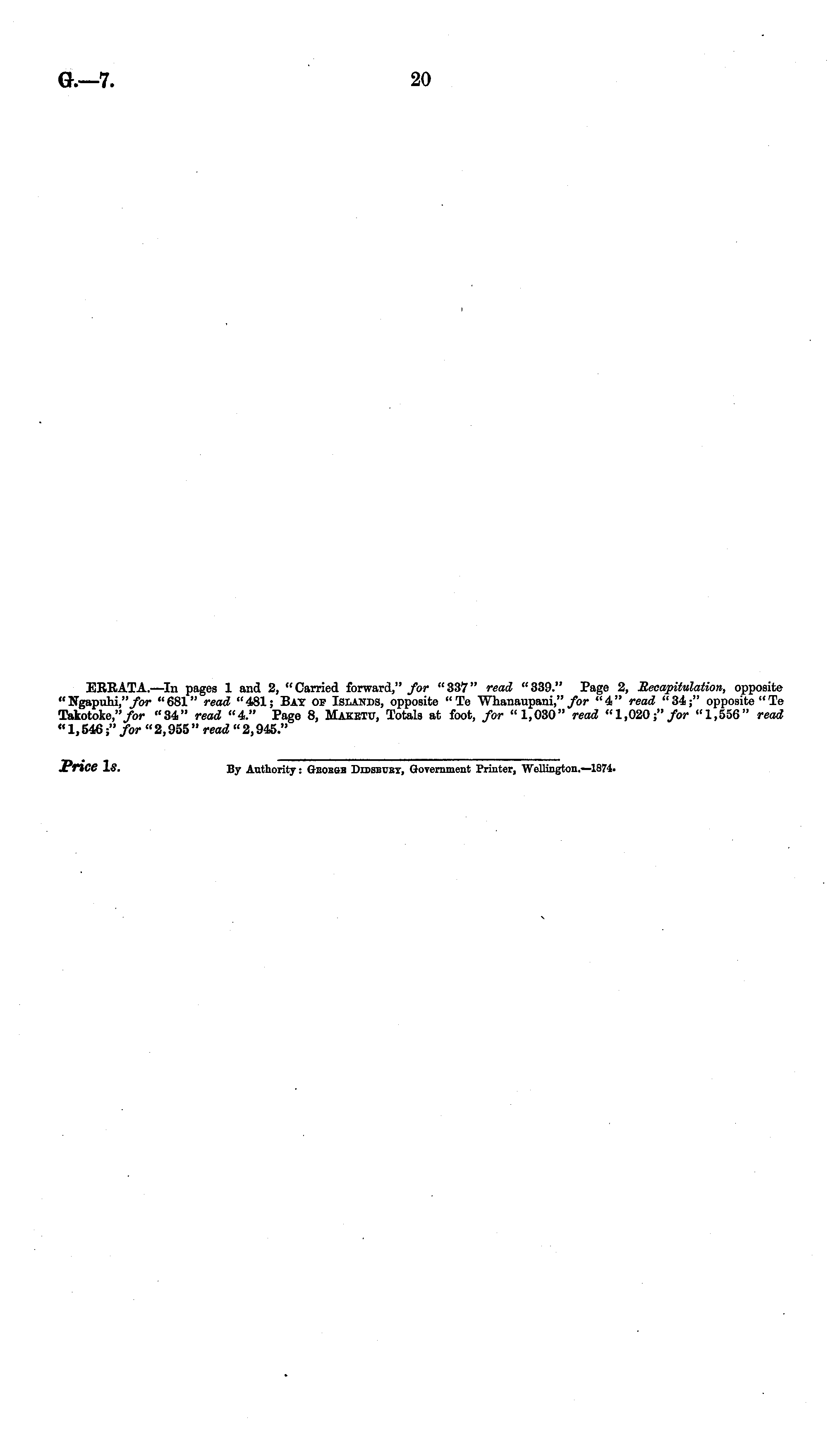 ERRATA.—In pages 1 and 2, "Carried forward," for "337" read, "339." Page 2, Secapitulation, opposite " Ngapuhi/'/or "681" read "481; Bat op Islands, opposite " Te Whanaupani," for "4" read "34;" opposite "Te Takotoke,"/or "34" read "4." Page 8, Maketu, Totals at foot, for "1,030" read "1,020;" for "1,556" read " 1, 546 ;" for " 2,955 " read " 2, 945." JPrice Is. By Authority: Geoesb Didsbtot, GoVernment Printer, Wellington.—lB74.