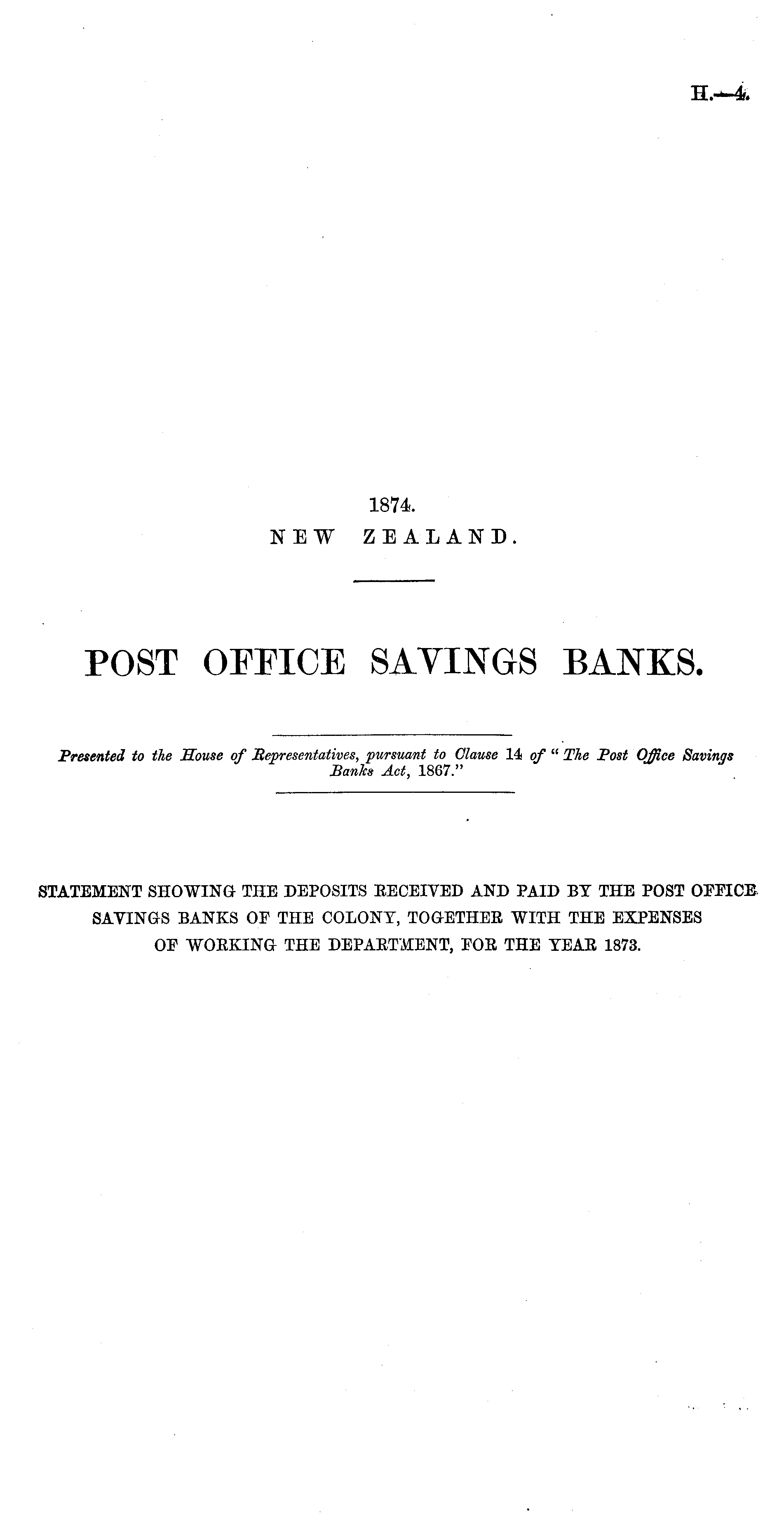 Presented to the Souse of Representatives, pursuant to Clause 14 of " The Post Office Savings Banks Act, 1867."