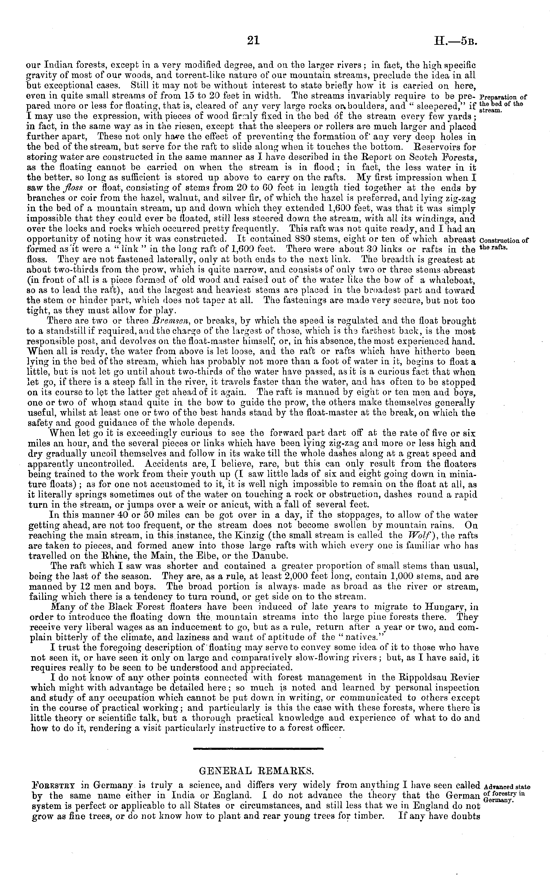 GENERAL REMARKS. Fobestet in Germany is truly a science, and differs very widely from anything I have seen called by the same name either in India or England. I do not advance the theory that the German system is perfect or applicable to all States or circumstances, aud still less that we in England do not grow as fine trees, or do not know how to plant and rear young trees for timber. If any have doubts