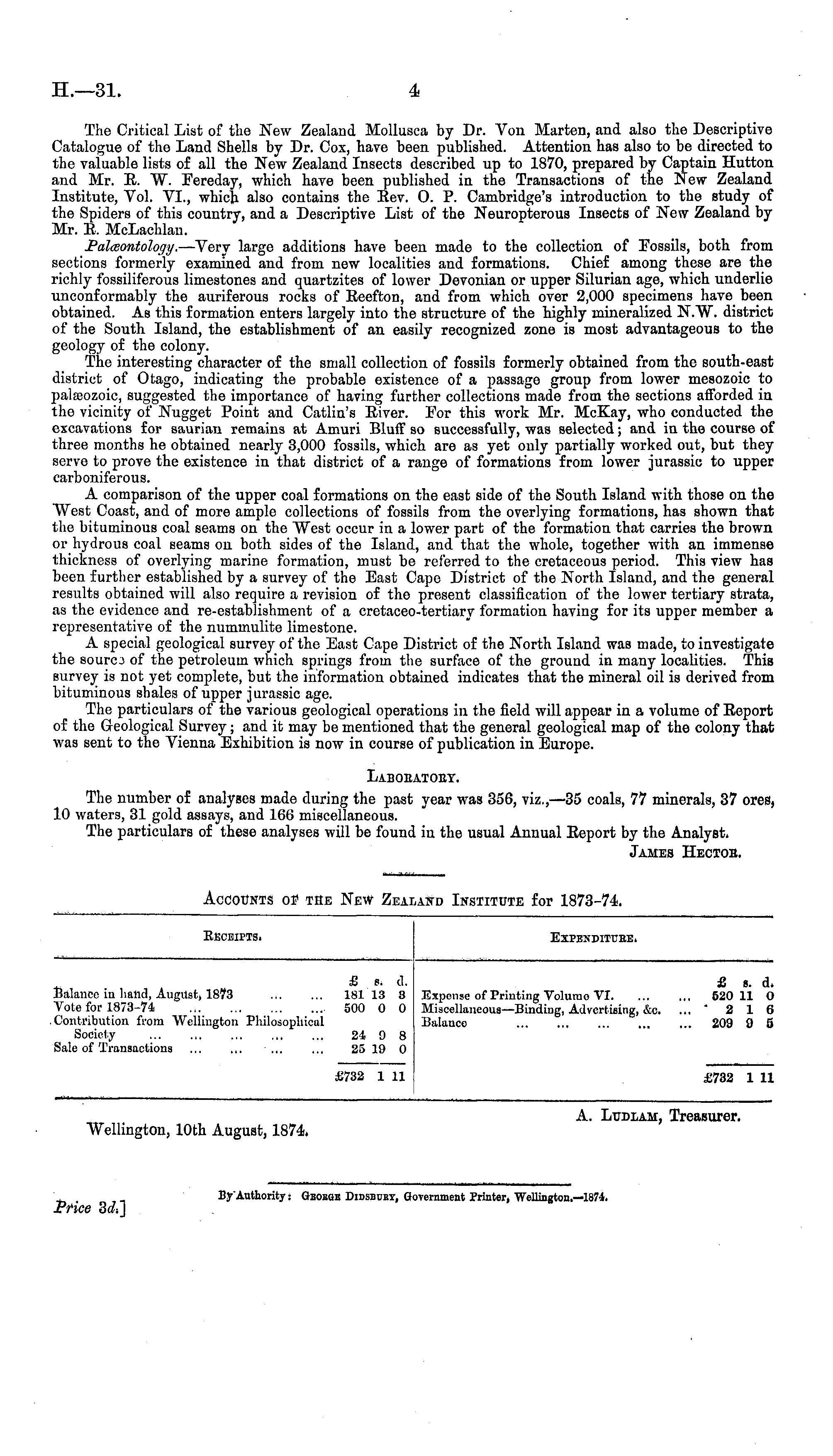 ACCOUNTS OF THE NEW ZEALAND INSTITUTE for 1873-74.