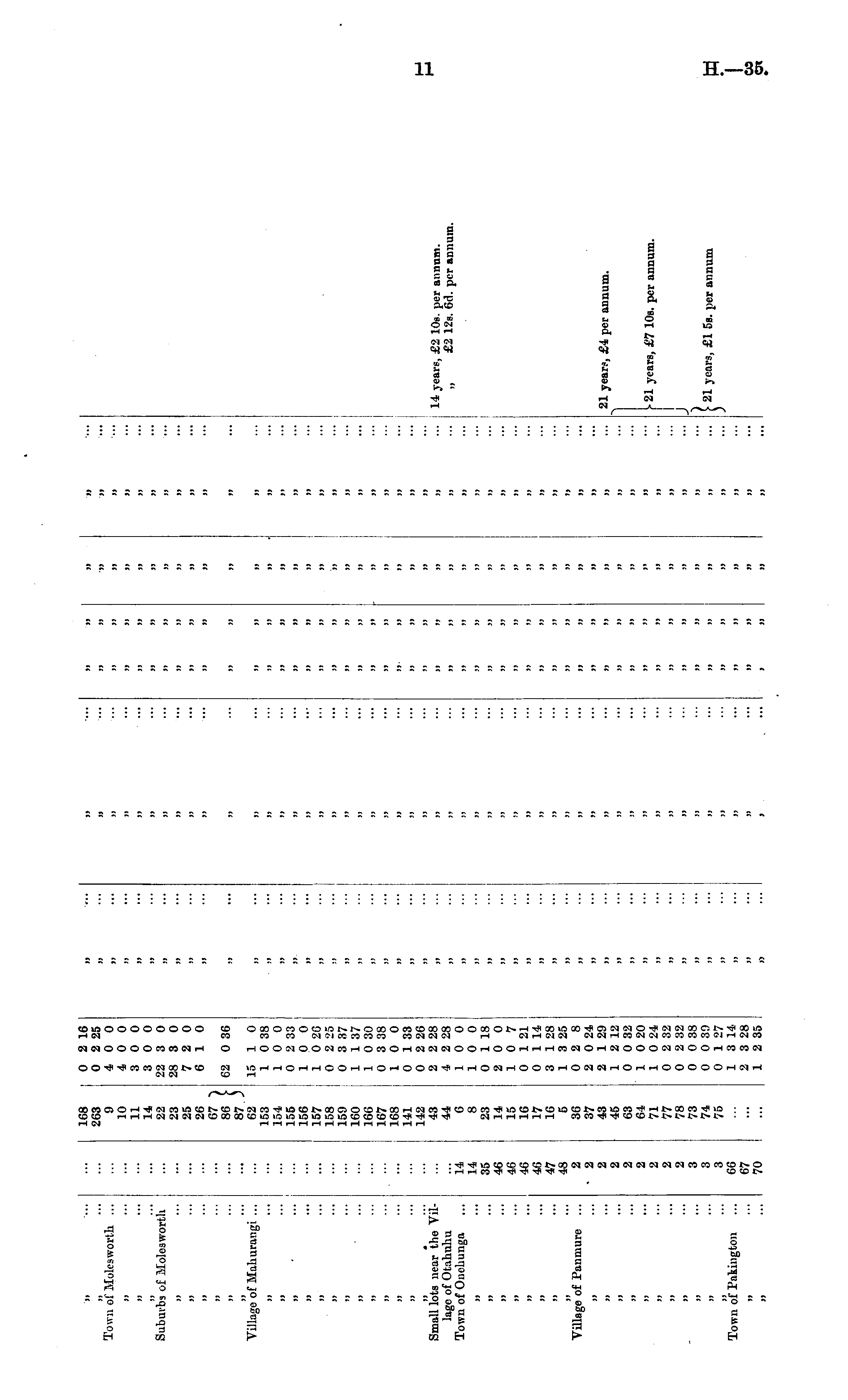 JJ "• n JJ j> »> )) jj Town of Moleswortk ... 263 0 10 11 14 22 23 25 26 67 ) 87 J 62 153 154 155 156 157 158 159 160 166 167 168 141 142 43 44 6 8 23 14 15 16 17 16 5 36 37 43 45 63 64 71 77 78 73 74 75 0 2 25 4 0 0 4 0 0 3 0 0 3 0 0 22 3 0 28 3 0 7 2 0 6 10 » JJ j) » j» >> » j) jj >j !> II )j )> jj jj JJ JJ )j H »j >j Suburbs uf Moleaworth )> JI )J 3> >) jj M >) 3) i) jj >> )> JJ j) >> jj !) ij || )) j) jj sj }) JJ )) j) jj jj 62 0 36 )) >) )J jj jj ■ •■ Village of Mahurangi ... )> jj ••• jj ■■• •j jj jj jj jj jj *■ • jj * Small lots near the Village of Otalmlm Town of Onehunga » u j> •• • 14 14 35 46 46 46 40 47 48 2 • 2 2 2 2 2 2 2 2 3 3 3 66 67 70 15 1 0 1 0 38 10 0 0 2 33 10 0 1 0 26 0 2 25 0 3 37 1 1 37 1 0 30 0 3 38 10 0 0 1 33 0 2 26 2 2 28 4 2 28 10 0 10 0 0 1 18 2 0 0 10 7 0 1 21 0 1 14 3 1 28 1 3 25 0 2 8 2 0 24 2 1 20 1 2 12 0 0 32 1 0 20 1 0 24 0 2 32 0 2 32 0 0 3S 0 0 30 0 1 27 1 3 14 2 3 28 1 2 35 :) II :) )> )) >> )i >> >t j) >) )> it >> II jj jj a U jj II j» >) )j )> j> 5) jj ii jj >i i) »> jj jj )> JJ i) >j jj >j n jj )j j) jj jj j) jj jj M ji >j j) j) a a )> II j) :j j) 3) !) ?> j> jj >j ! jj j» j» 3) JJ JJ ii jj jj jj a jj jj jj jj )j j) H 14 jeare, £2 10s. per annum. „ £2 12s. 6d. per annui jj II II j) II jj ••• II JJ j) jj jj ••• jj Village of Panmure ... M )) II )j JJ >J )) If j> jj j) >) j> jj jj jj jj !) }| )) jj jj Jj ii 21 year?, £4> per annum. ] jj ••• jj f| n jj n jj j, ... J) JJ jj jj j» jj jj ••• >> jj jj jj j» •" II II jj jj )■ 21 years, £7 10s. per annum. I i j) JJ >f ji j» jj jj 31 J) jj jj i) jj jj t) JJ jj j» ii jj jj ■■ • » JJ >j u j> { 21 jears, £1 5s. per annum jj )> )l j> jj »> jj jj J) J) j) n j> Town oi' 1'akington II jj ji u jj )) JJ jj j> jj » jj ii jj » jj » '" rt i t » » j>