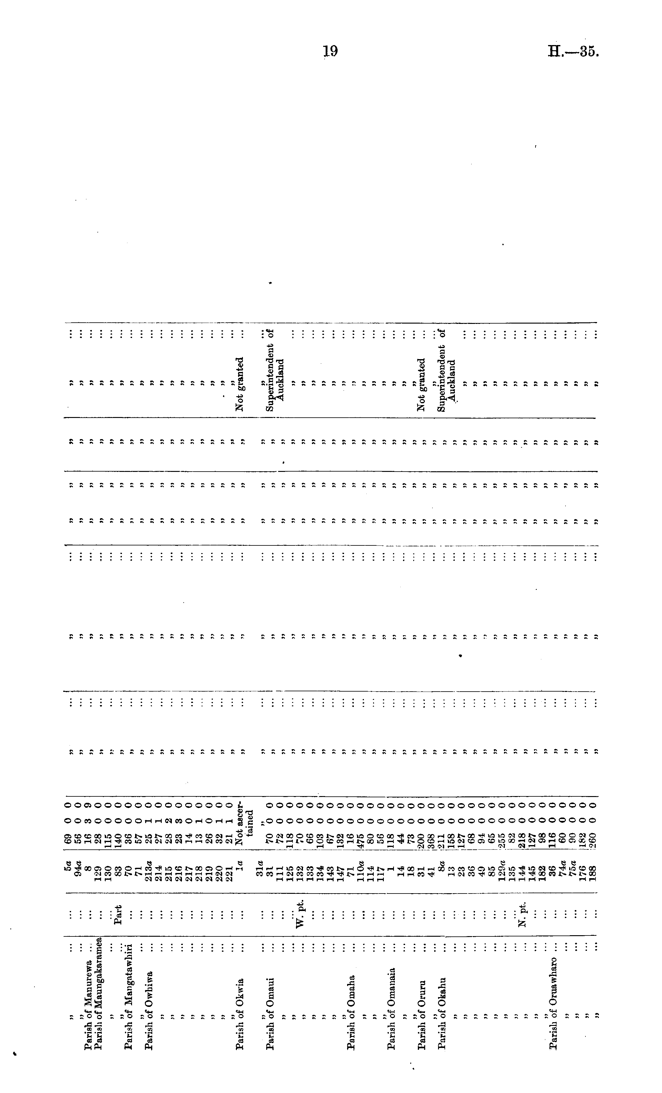 JJ Parish of Manurewa .. Parish of Maungakaramea j> 3J Parish of Mangatawhiri Parish of Owliiwa Part 5a 8 129 130 83 70 71 213a 214 215 216 217 218 219 220 221 Iff 69 0 0 56 0 0 16 3 9 28 0 0 115 0 0 140 0 0 36 0 0 57 0 0 25 1 0 27 1 0 28 2 0 23 3 0 H 0 0 13 1 0 26 0 0 32 1 0 21 1 0 Not ascertained 3J 31 JJ h j> }> »> ]» >» jj j> JJ II H )) 33 3) JJ JJ 1J 3) M 3) J) 33 33 33 ii JJ JJ JJ 33 33 J> JJ 5) ... jj ... jj ... » "• jj ... jj JJ jj ... JJ 3) j) 3> )> 13 JJ jj ... 33 3) 33 JJ JJ •■• )> }J 33 33 JJ )» ... 33 ••• 3> J3 JJ '• ■ 33 }> »1 33 33 JJ 33 ■ " SJ JJ JJ 3) 33 JJ ■ ■• JS 3> 3J |J JJ JJ a 33 • • • Parish of Okwia It )> )» JJ 33 ••• Not granted 3> )3 ;y Parish of Omaui >j ••• jj ■ •• n ■ ■• jj ■ •• 33 JJ Parish of Omaha 33 JJ JJ Parish of Omanaia 33 jj " • Parish of Oruru W.'pt, 31a 31 111 125 132 133 134 143 147 71 110a 114 117 1 14 18 31 41 8a 13 23 36 49 85 135 144 145 182 36 74a 75a 176 188 70 0 0 72 0 0 ■118 0 0 70 0 0 66 0 0 |1O3 0 0 67 0 0 132 0 0 16 0 0 475 0 0 80 0 0 56 0 0 118 0 0 44 0 0 73 0 0 200 0 0 ,368 0 0 til 0 0 158 0 0 127 0 0 j 68 0 0 94 0 0 65 0 0 255 0 0 82 0 0 218 0 0 127 0 0 98 0 0 116 0 0 I 60 0 0 00 0 0 J182 0 0 ;260 0 0 J) )1 M n j) jj 33 JJ JJ 3) J» JJ »J M 3) H J3 jj jj )) n n 3) H 3) 3) 3) 3) 3) J) 3) 3) JJ )J 3) 33 33 || )3 33 II J) )J )3 >> 3) J3 3) 3> 3J JJ JJ )J JJ JJ JJ 3> ;j J3 n 33 JJ JJ )J JJ 33 JJ JJ jj ■•■ Superintendent of Auckland jj ii jj ••« jj ••• 33 • •• : j • • • Jj • •• jj jj ••• jj jj jj •■ • Not granted jj '" Parish of Okahu ... )i JJ )S jj Superintendent of Auckland ]) 33 M JJ J3 J3 JJ JJ i 3J 33 JJ )3 jj • ■• u JJ >J »> ... jj 3» JJ J3 3J >> ii ... JJ 3J 3) 3J u 3J "" JJ )) 33 3) jj *• • 33 " ' N.'pt. 3) II 33 }J 33 jj •■ • JJ 33 JJ jj •■■ jj . . . )) JJ 3J 33 ]j ... .Parish of Oraawharo ... J> 33 |] JJ j, ... JS JJ 33 JJ jj ■ •• )> J» n 7) 33 33 ••• JJ )) jj a JJ JJ II jj jj )) JJ „ n 11 3> 3J » W