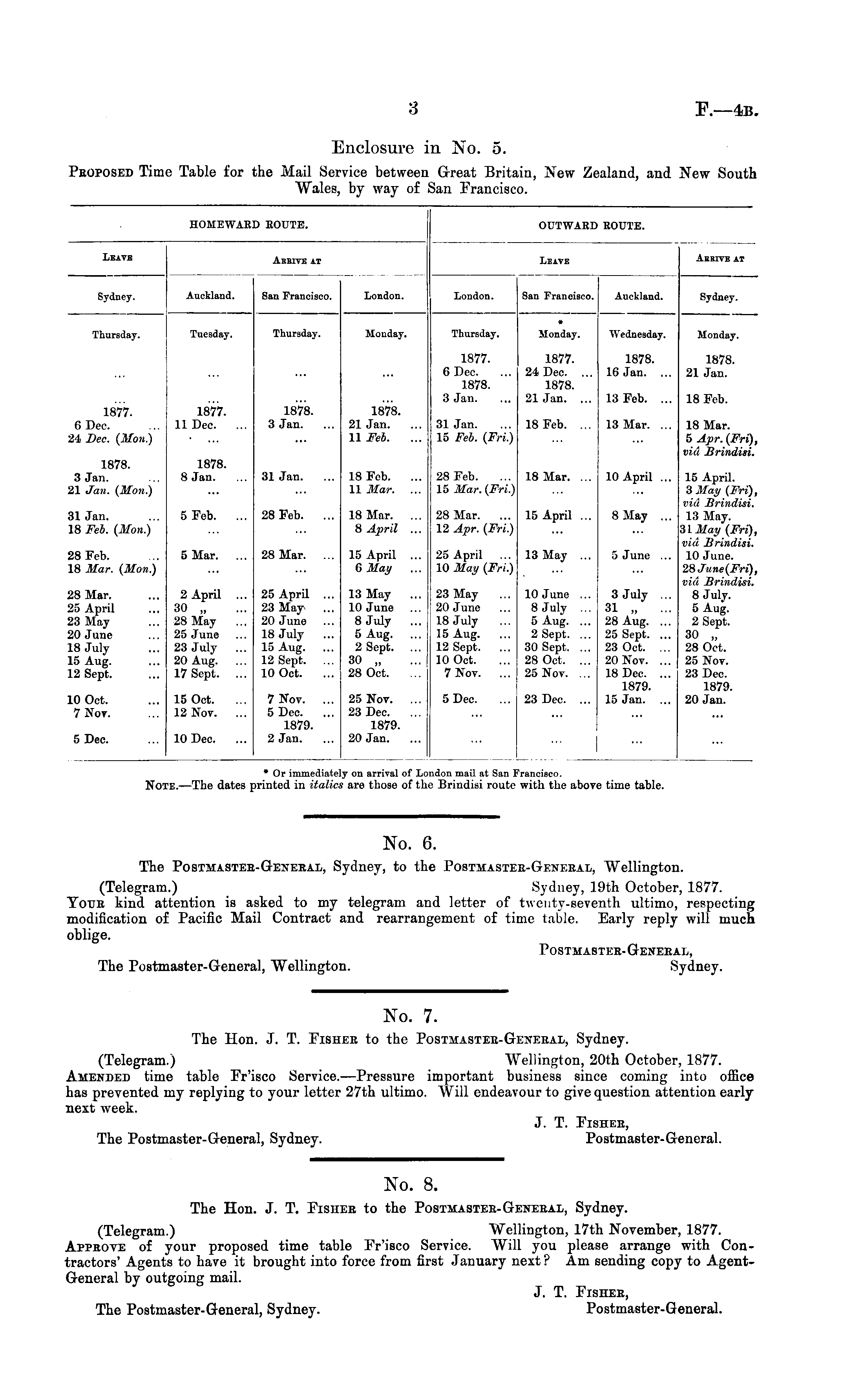 Enclosure in No. 5. PROPOSED Time Table for the Mail Service between Great Britain, New Zealand, and New South Wales, by way of San Francisco.