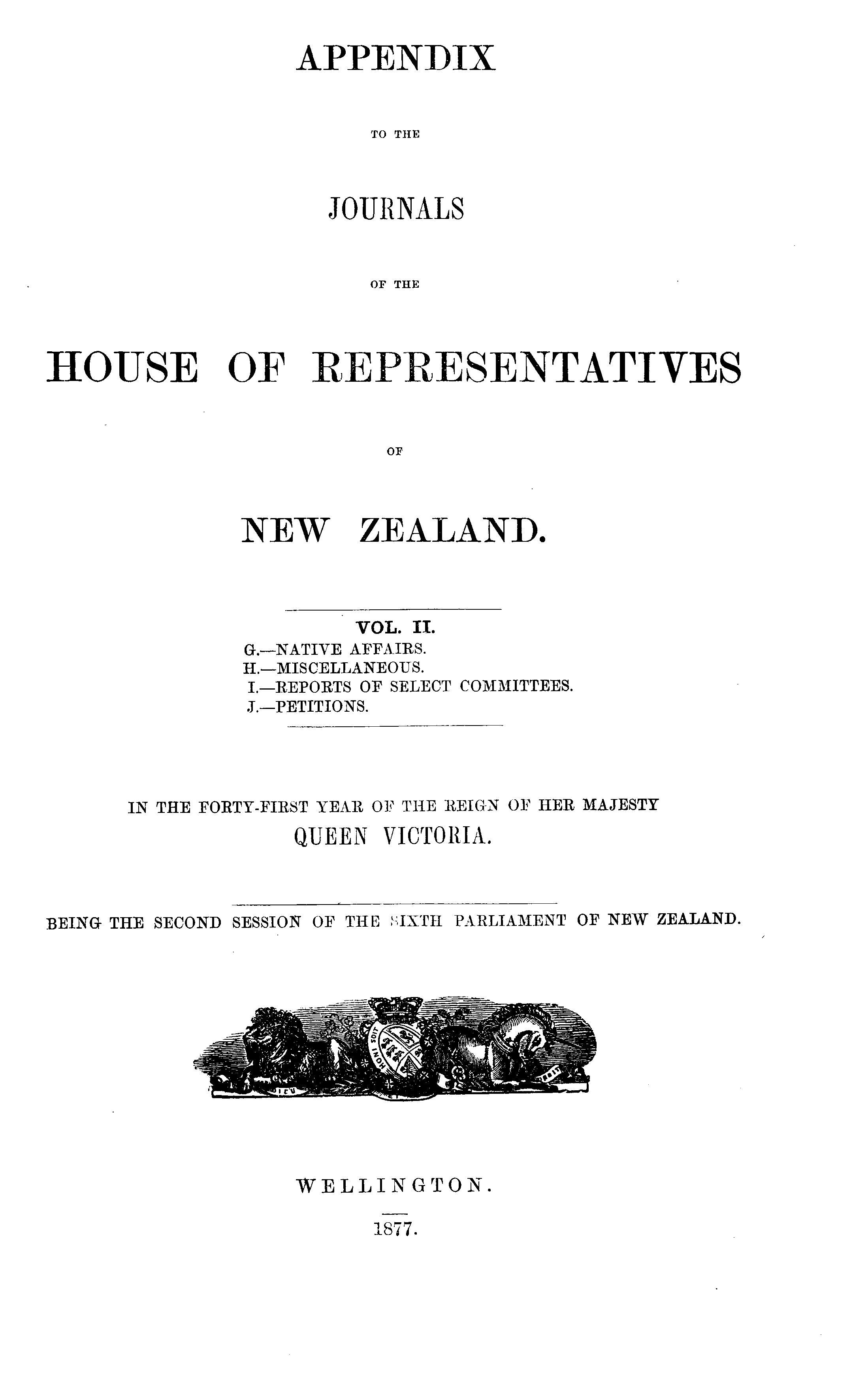 VOL. II. G.—NATIVE AFFAIRS. H.—MISCELLANEOUS. I.— REPORTS OF SELECT COMMITTEES. J.—PETITIONS.