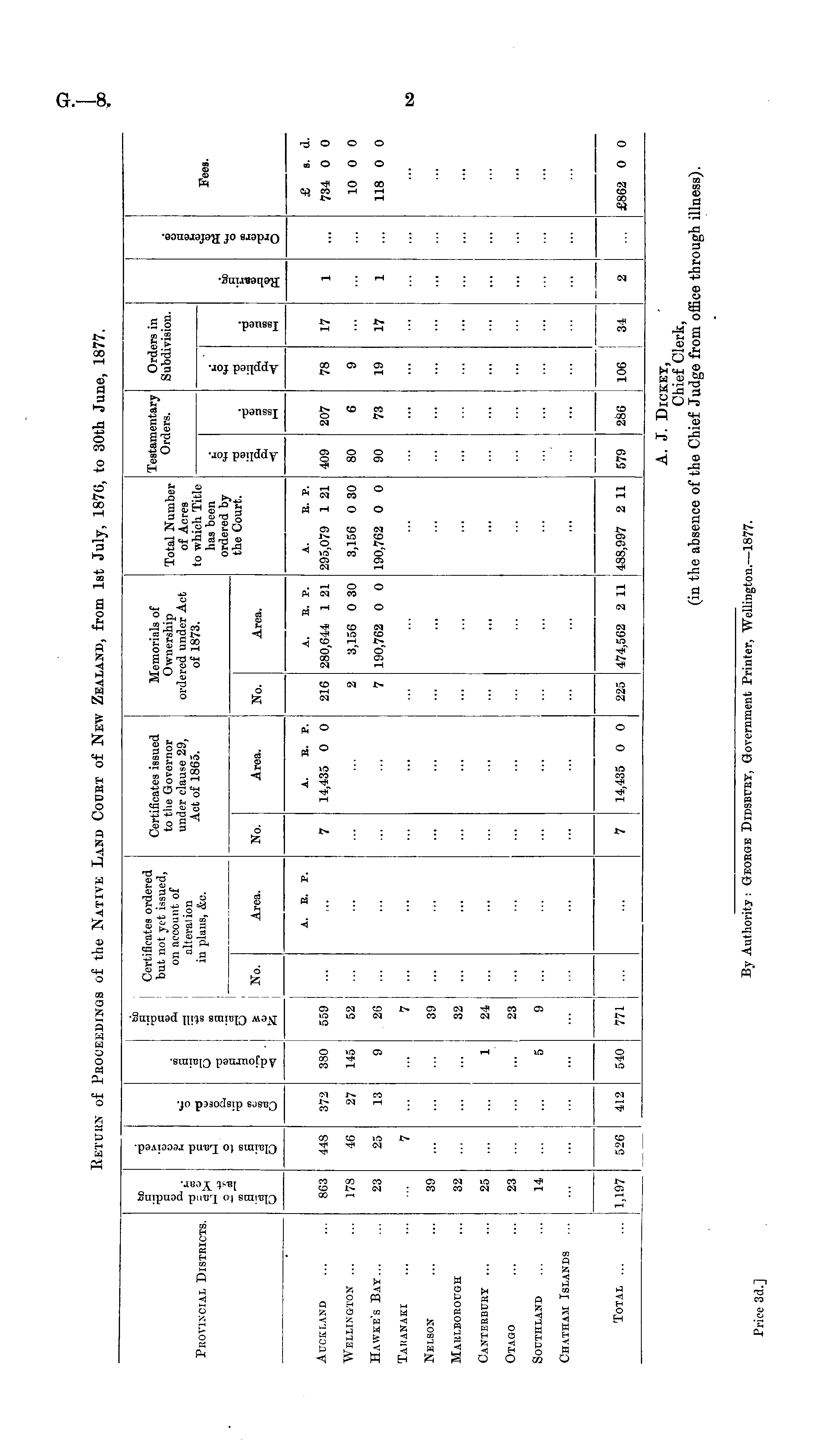 A. J. Dickey, Chief Clerk, (in the absence of the Chief Judge from office through illness). By Authority: Geobge DiDSßrav, Government Printer, Wellington.— 1877. Price 3d.]