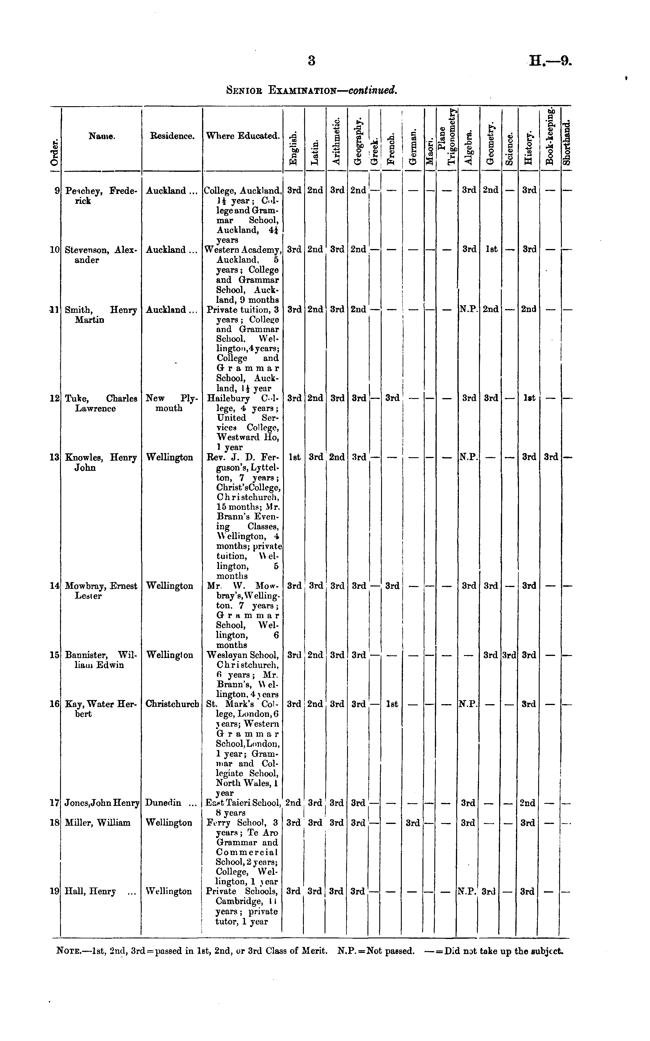 _ Name. Residence. Where Educated. ■ a .:_ -_ -. ■*. 1-. ,4 1 5, B o ■ • M 5 4 a I 6 C c a y 1 2 a a § s I i— ■ s B BO •A _ S o 6 o Q ■= .° "S GO 5 W ti I I i P. <_ - O o p. -t_> I 53 3rd 2nd 3rd Peichey, Frederick Auckland ... College, Auckland, 1. year; College and Grammar School, Auckland, 4i 3rd 2nd 3rd 2nd Stevenson, Alexander Auckland ... years Western Academy, Auckland, 5 years; College and Grammar School, Auckland, 9 months Private tuition, 3 years; College and Grammar School. Wellington, .years; College and Grammar School, Auckland, IJ year Hailebury C _■ lege, 4 years; United Services College, Westward Ho, 1 year Rev. J. D. Ferguson's, Lyttelton, 7 years; Christ'sCollegc, Christchurch, 15 months; Mr. Brann's Evening Classes, Wellington, - months; private tuition, \\ ellington, 5 months Mr W. Mowbray's, Wellington, 7 years; Grammar School, Wellington, 6 months Wesleyan School, Christchurch, 6 years; Mr. Brann's, \\ ellington. + \ ears St. Mark's * College, London, G j ears; Western Grammar SchooljLondon, 1 year; Grammar and Collegiate School, North Wales, 1 J ear Eu. t Taieri School, 8 years Ferry School, 3 years; Te Aro Grammar and Commercial School, 2 years; College, Wellington, 1 \car Private Schools, Cambridge, 11 years; private tutor, 1 year 3rd 2nd 3rd 2nd 3rd 1st 3rd Smith, Henry Martin Auckland ... 3rd 2nd 3rd 2nd N.P. 2nd 2nd Tuke, Charles Lawrence New Plymouth 3rd 2nd 3rd 3rd 3rd 3rd 3rd 1st Knowles, Henry John Wellington 1st 3rd 2nd 3rd JT.P. 3rd 3rd 14 Mowbray, Ernest Lester Wellington 3rd 3rd 3rd 3rd 3rd 3rd 3rd 3rd Bannister, William Edwin Wellington 3rd 2nd 3rd 3rd 3rd 3rd 3rd Kay, Water Herbert Christchurch 3rd 2nd 3rd 3rd Id N.P 3rd Jones.John Henry Dunedin ... 2nd 3rd 3rd 3rd 3rd 2nd Miller, William Wellington 3rd 3rd 3rd 3rd 3rd 3rd 3rd — Hall, Henry Wellington 3rd 3rd 3rd 3rd N.P. 3rJ 3rd