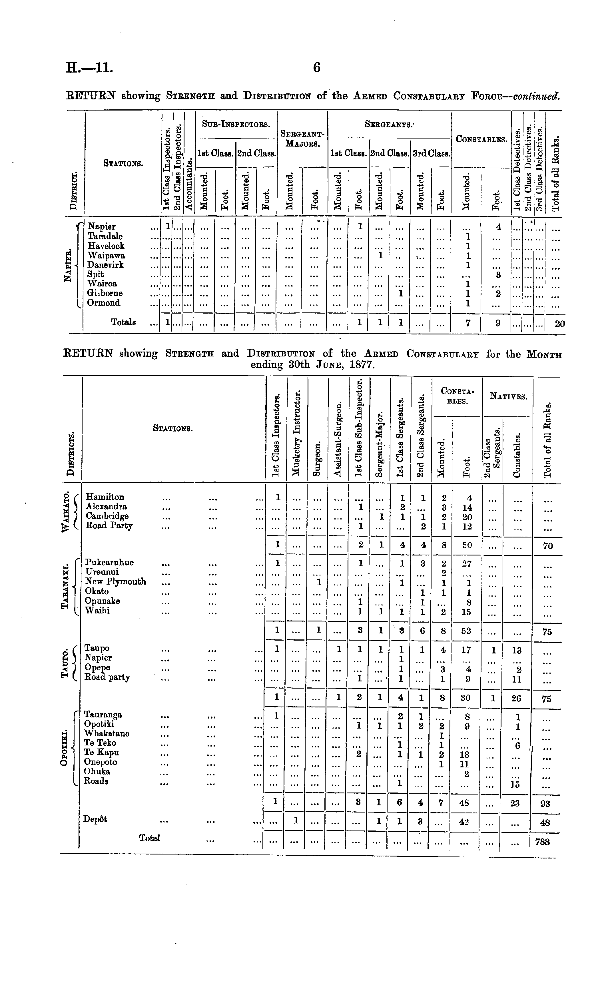 Stations. II S.I If I? D Q D O -, 1st Sub-Inj ilass. 'E0TOES. 2nd Class. Seeg Ma. eantroES. 1st Class. iEBGEANT! 2nd Class. I.3rd Class. Constables. _ o-' CD tu ; t> b "■£ o o <D 43 rt IN 1 p 5 I 1 d T3 O I 9 g I 4 q I I ll ill Jl 5 O ! Ii— Napier Taradale Havelook Waipawa Danevirk Spit Wairoa Gi-borne Ormoud 1 1 1 i ... 1 1 1 1 4 I ... i 3 ... ... 1 1 1 1 2 Totals 1 1 ll I 1 7 9 ... 20 EE' 'URN showing OT • I SI" rHIBUT] ling 30 :on i >f ti LAHT for tl le IS' Aem: '7. on: ' IB' ONTH >ll<i th Ji INE, Stations. i o I 3 M 5 H I 9 H I 3 | -5 o 1 a H DQ I 5 r—I o I a E o GO I & 5 OQ 9 D M I m 3 re a i Co: b: rSTAiES. Natives. 1 "8 I ft J g § o CO C3 if a O I S o O i < •A Hamilton Alexandra Cambridge Road Party 1 "i 1 1 2 1 1 1 2 2 3 2 1 4 14 20 12 l 1 2 1 4 4 Pukearuhue Ureunui New Plymouth Okato Opunako Waihi 8 50 70 1 1 1 3 2 2 1 1 27 < t < 1 1 1 1 1 1 1 8 15 1 1 i 1 2 1 1 3 l 8 6 8 52 75 Taupo Napier Opepe Road party 1 1 1 l 1 1 1 1 1 4 3 1 17 4 9 1 13 2 11 i 1 1 2 l 4 1 8 30 1 26 75 o Tauranga Opotiki Wlmkatane Te Teko Te Kapu Onepoto Obuka Roada 1 i 2 i 2 1 i l 1 2 1 2 1 1 2 1 8 9 18 11 2 1 1 6 l 16 1 3 4 7 48 23 93 Dep6t 1 1 1 42 48 1 3 Total 788