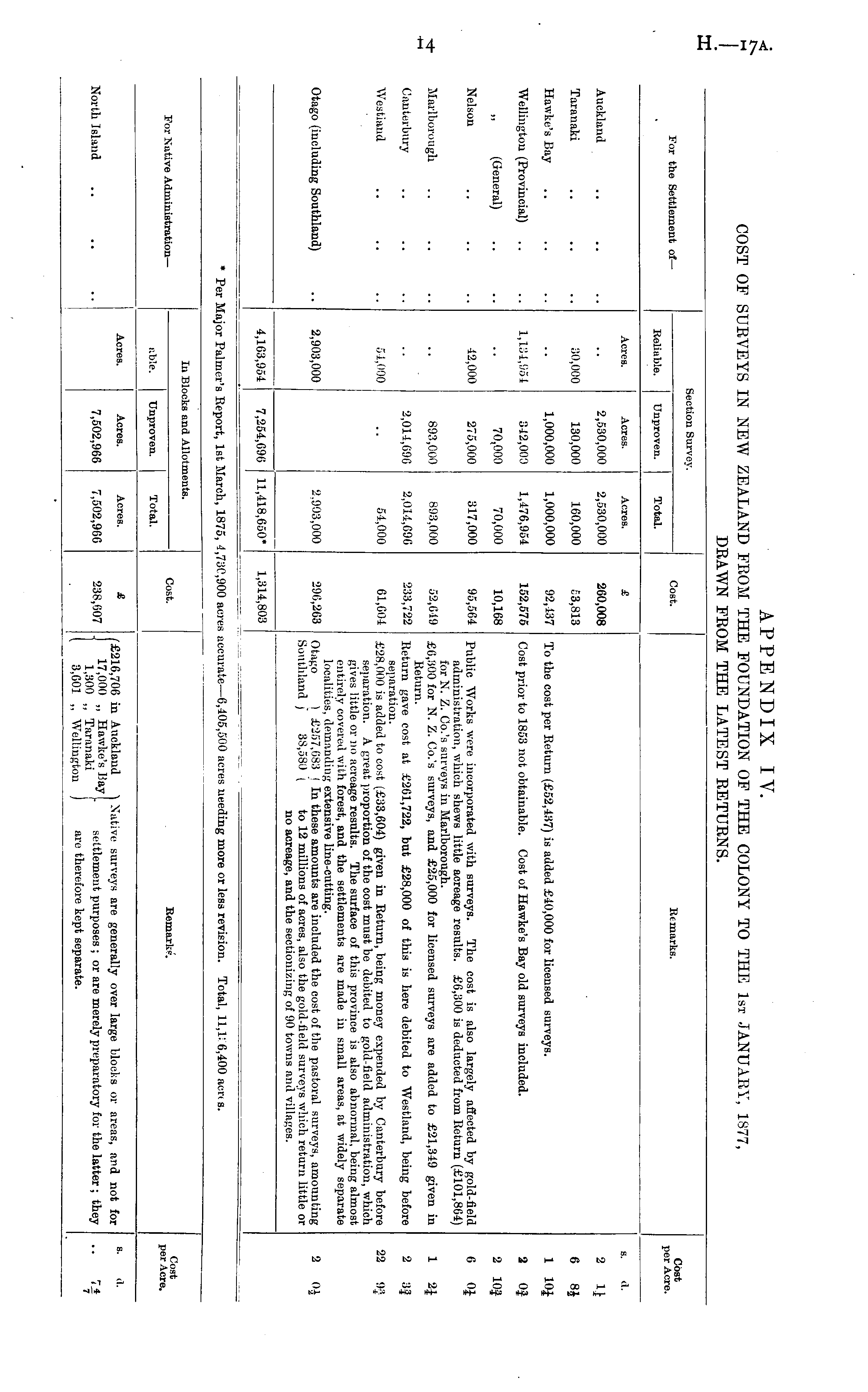 APPENDIX IV. COST OF SURVEYS IN NEW ZEALAND FROM THE FOUNDATION OF THE COLONY TO THE 1st JANUARY, 1877, DRAWN FROM THE LATEST RETURNS.
