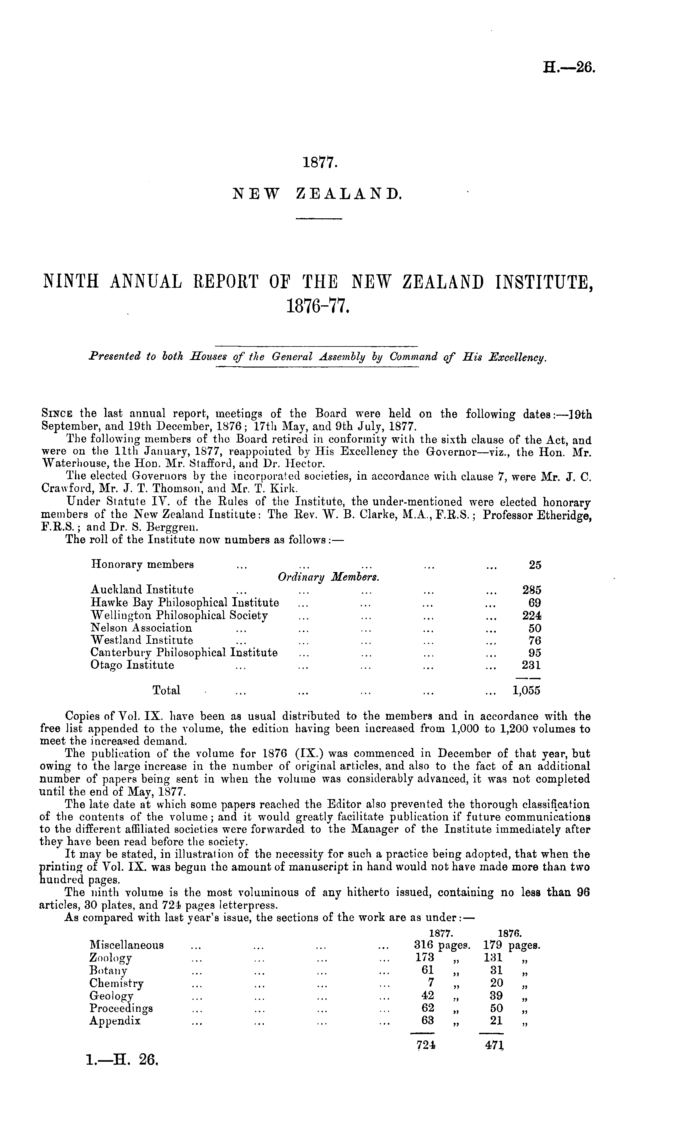 NINTH ANNUAL REPORT OF THE NEW ZEALAND INSTITUTE, 1876-77.