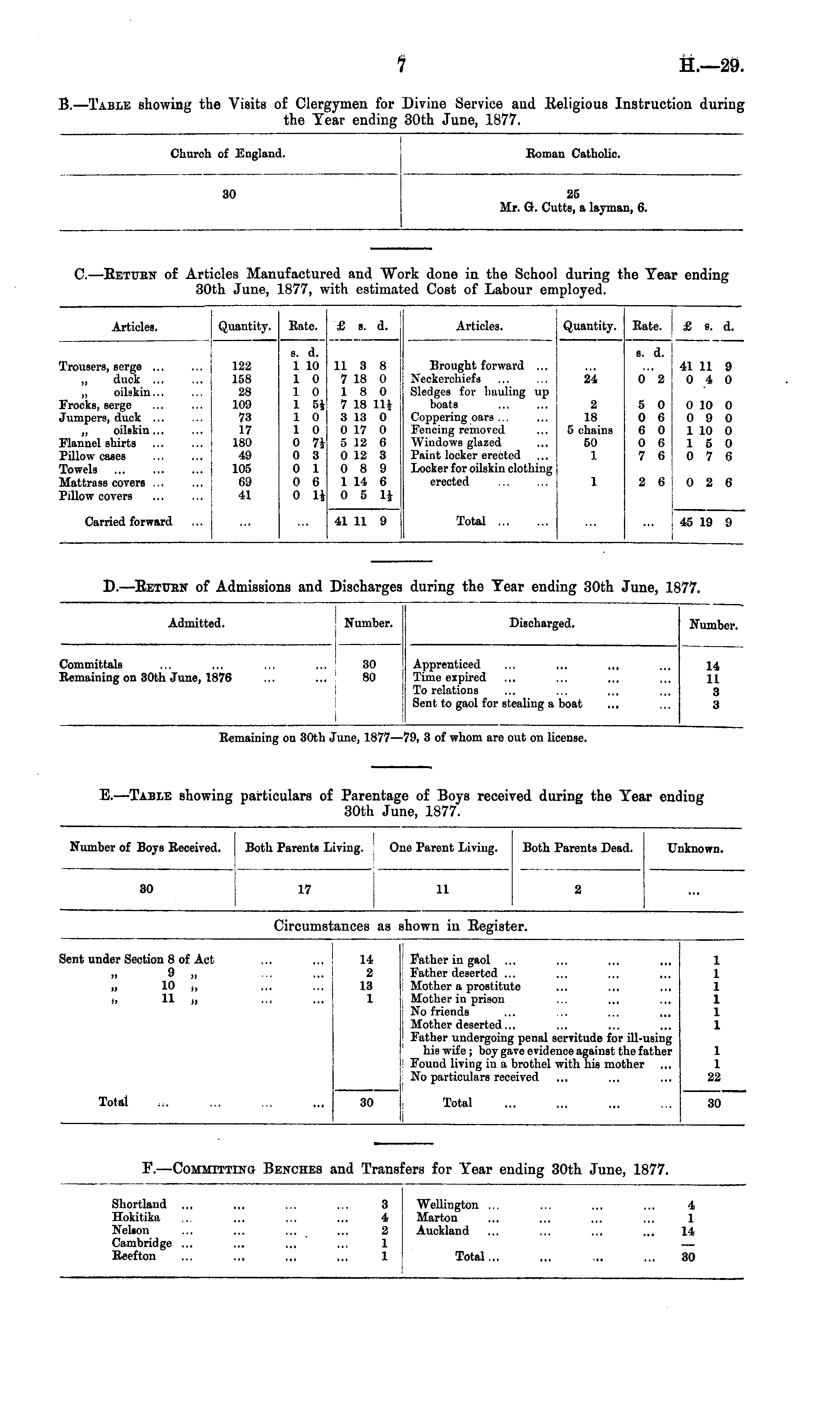 F. —COMMITTING BENCHES and Transfers for Year ending 30th June, 1877.