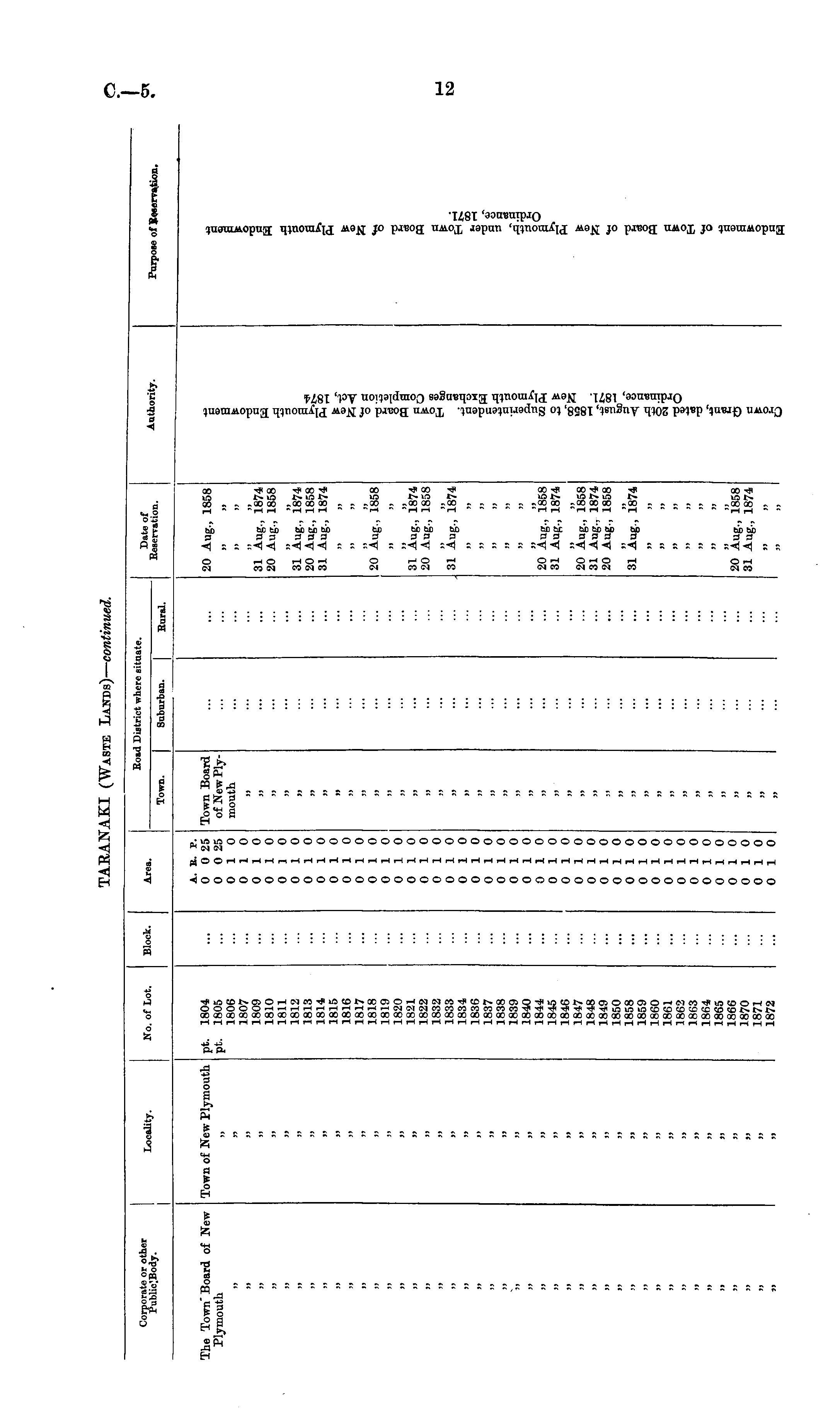 ASTE lAHDS — continue) Road District where situate. Corporate or other Public;Body. Locality. No. of Lot. Block. Bate of Authority. Purpose of Kcoorvation. ;ion. Town. Suburban. Rural. The Town" Board of New Plymouth >} n n J> 3) 31 J» )» 33 M J3 »* 33 J» 3J >» M » Town of New Plymouth j» >■> j> it n a jj >> n tt tt )j pt. 1804 pt. 1805 1806 1807 1809 1810 1811 1812 1813 1814 1815 1816 1817 1818 1819 1820 1821 1822 1832 1833 1834 1836 1837 1838 1839 1840 1844 1845 1846 1847 1848 1849 1850 1858 1859 1860 1801 1862 1863 1864 1865 1866 1870 1871 1872 A. E. P. 0 0 25 0 0 25 0 10 0 10 0 10 0 10 0 1 0 0 10 0 10 0 10 0 10 0 10 0 10 0 10 0 10 0 10 0 10 0 10 0 10 0 10 0 10 0 10 0 10 0 10 0 10 0 10 0 10 0 10 0 10 0 10 0 10 0 10 0 10 0 10 0 10 0 10 0 10 0 10 0 10 0 10 0 10 0 10 0 10 0 10 0 10 Town Board of New Plymouth >> a »j a tt » j> I? n j» j) >» 3) it 33 33 » II 20 Aug., 1858 if it >t it 31 Aug., 1874 20 Aug., 1858 31 Aug., 1874 20 Aug., 1858 31 Aug., 1874 JJ J3 it it 20 Aug., 1858 31 Aug., 1874 20 Aug., 1858 31 Aug., 1874 » )> )» )j ii OS d O 3 ! I 1 o u r 33 n it >> i> 53 a >t J» 5) )j » » 33 )) 3) 20 Aug., 1858 31 Aug., 1874 it a 3) it n )) n j) H 20 Aug., 1858 31 Aug., 1874 20 Aug., 1858 )t »> I )> )> n o 3> jj 31 Aug., 1874 !> 33 )> » J» H H JJ )3 )) J> » j» n jj )> )> )» 3 3 N H )» 3> * o a )> 3) a »> J» J) )> 20 Aug., 1858 31 Aug., 1874 J) jj )> J> » )1 JJ j» It it ->1 J) 37 )t )3