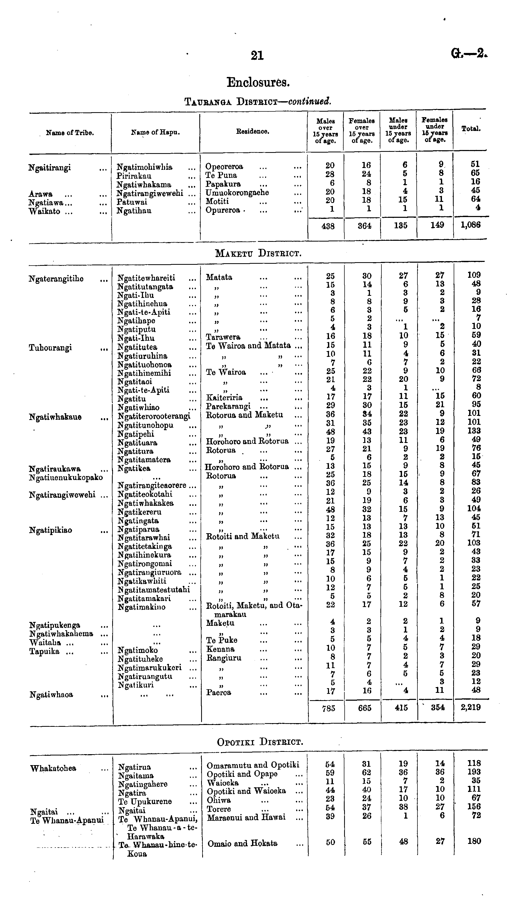 Enclosures. Tatjranoa District — cont. Inued. Name of Tribe. Name of Hapu. Residence. Males over 15 years of ago. Females over 15 years of age. Males under 15 years of ago. Females under 16 years oi age. Total. fgaitirangi .rawa 'giitmwa... V^aikato ... Ngatimohiwliia Pirirakau ,.. Ngatiwhakama Ngatirangiwewehi ... Patuwai Ngatihau Opeoreroa TePuna Papakura Umuokorongaehe Motiti Opureroa 2D 28 6 20 20 1 10 21 8 IS IS 1 a 5 L 4 16 1 9 s 1 3 11 1 51 05 10 45 01 4 438 364 135 149 1,086 Maketu District. Fuboiirangi Ngatitewhareiti Ngatitutangata Ngati-Ibu Ngatihinehua Ngati-te-Apiti Ngalibape Ngatiputu Ngati-Ihu Ngatitutea Ngatiuruhina Ngatituohonoa Ngatiliinemihi Ngatitaoi Ngati-te-Apiti Ngatitu Ngatiwhiao Ngatiterorooterangi Ngatitunohopu Ngatipelii Ngatituava Ngatitura Ngatitarnatera Ngatikea Matata Tarawera Te Wairoa and Matata ... )! » Te Wairoa Kniteriria Parekarangi Rotorua and Maketu JJ .» Horohoro and Rotorua ... Eotorua 25 15 8 8 (i 5 4 W 15 10 7 25 21 4 17 29 86 :;i ■is 10 27 5 13 25 36 12 21 ■IS 12 15 32 36 17 16 8 lo 12 5 22 80 14 1 8 3 2 3 IS 11 11 6 22 22 3 17 30 84 ;;5 48 13 21 G 15 IS 25 0 19 :;2 13 13 IS 25 15 9 9 6 7 5 17 27 6 3 9 5 1 10 9 4 7 9 20 1 11 15 22 23 23 11 9 2 9 15 14 3 6 15 7 13 13 22 9 7 4 5 5 2 12 27 13 2 3 2 2 15 5 6 2 10 9 15 21 9 12 19 6 19 2 8 9 8 2 3 9 13 10 8 20 2 2 2 1 1 8 6 109 48 9 28 16 7 10 59 40 31 22 66 72 8 60 95 101 101 133 49 76 15 45 67 83 26 49 104 45 51 71 103 43 33 23 22 25 20 57 \ Tgatiuenukukopako Horoboro and Eotorua ... Rotorua Ngatirangiwewehi ... Ngatipikiao Ngatirangiteaorere ... JS Tgatiteokotahi Ngatiwhakakea Ngatikercru Ngatingata Ngatiparaa Ngatitarawhai Ngatitetakinga Ngatihinekura Ngatirongomui Jfgatirangiiiruora ... Ngatikawhiti N gatitamateat utahi Ngatitaumkavi Ngatimakino )t '•' '" >j "• *• * n "• "• ,, ... ... Eotoiti and Maketu jj jj . ■•• jj jj jj jj jj j> jj jj u jj jj jj Eotoiti, llaketu, aud Otamarakau Maketu 2 1 4 5 2 4 5 1 2 4 7 3 7 5 3 11 9 9 18 29 20 29 23 12 48 Sgatipukenga ... Wftitolia ... L'apuika ... Ngatimoko Ngatitulieke Ngatimarukukeri ... Ngatiruungutu Ngutikuri Te l'uke Kenana Eangiuru 4 3 5 10 8 11 7 5 17 2 3 5 7 7 7 6 4, 16 j> ■■• "• Sgatiwhaoa ,, ... ... Paeroa '"4 785 GG5 415 354 2,219 Opotiki District. Whakatobea Ngaitai ... To Wlianau-Apanui jSTgatirua Ngaitama Ngatingakere Ngatira To Upukurene Ngaitai Te Whanau-Apanui, To Whanau-a-te-Harawaka Ta Whanau-hinete-Koua Omaramutu and Opotiki Opotiki and Opapo Waioeka Opotiki and Waioeka ... Oliiwa Torero Maraeuui and Ilawai 5!. 69 11 44 2:; 64 3D 31 G2 16 40 21 m 26 19 36 7 17 10 38 1 It :si; 2 ID 10 27 6 118 193 35 111 67 156 72 Omaio and Hokata 50 55 48 27 180