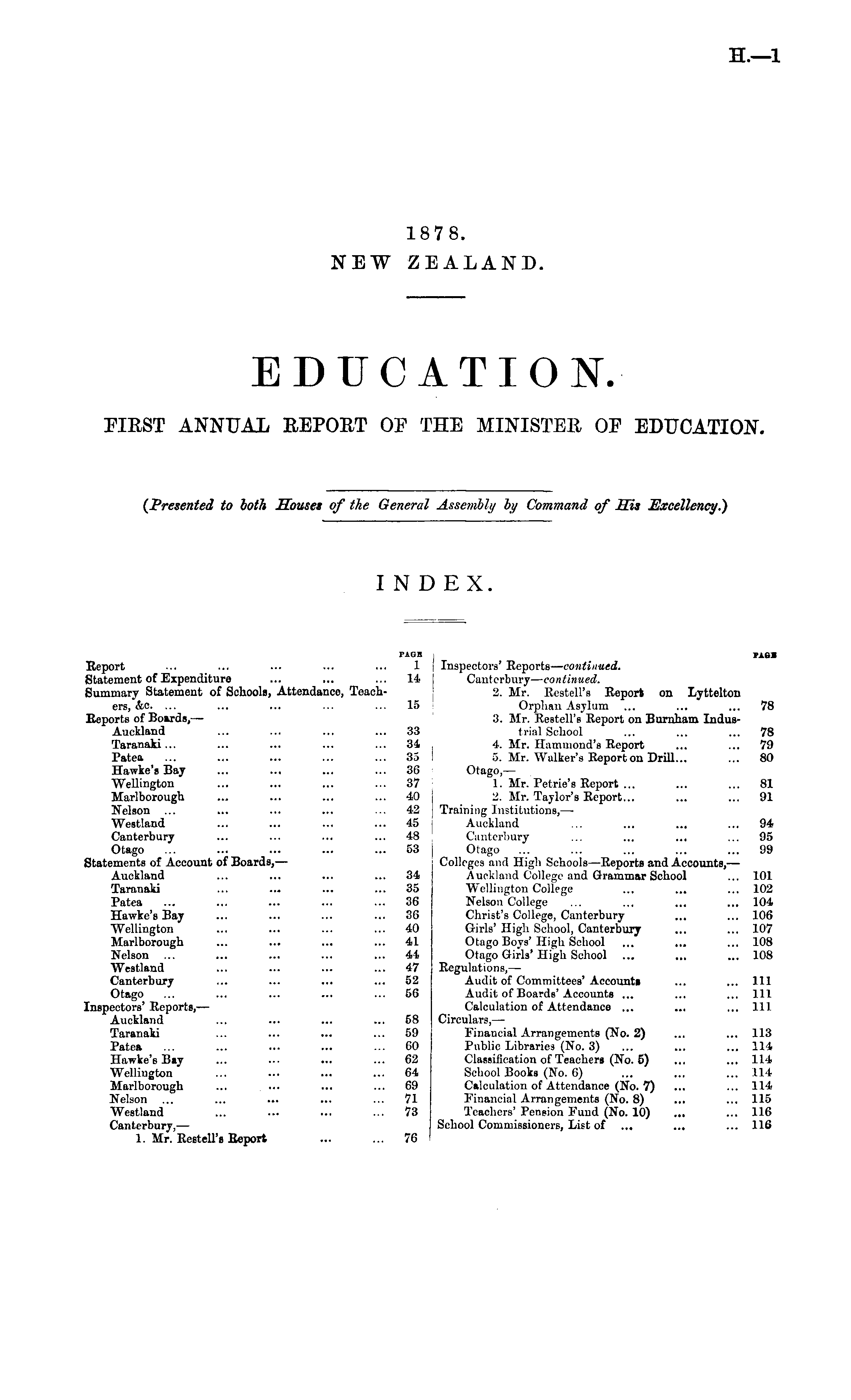 EDUCATION. FIRST ANNUAL REPORT OF THE MINISTER OF EDUCATION.